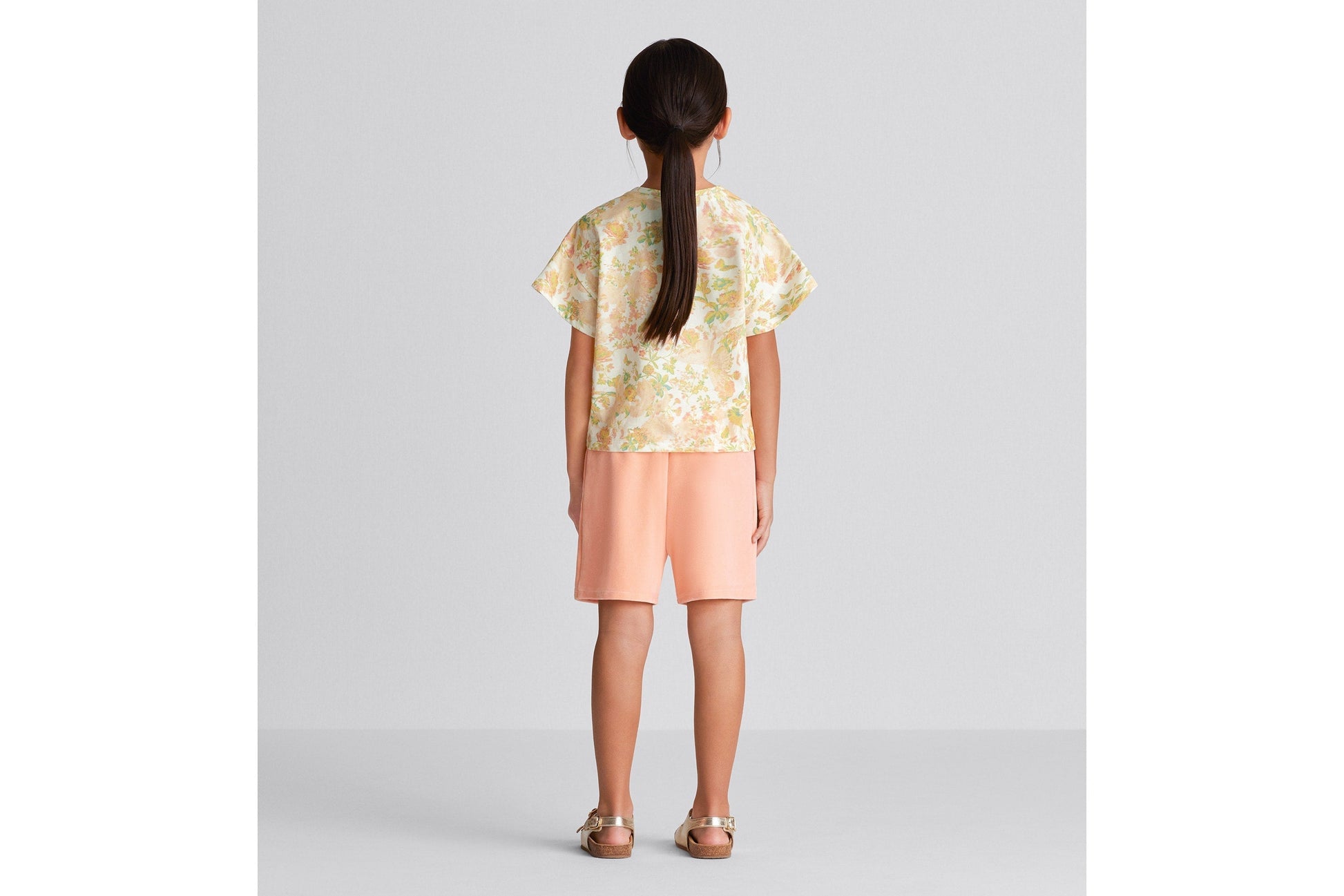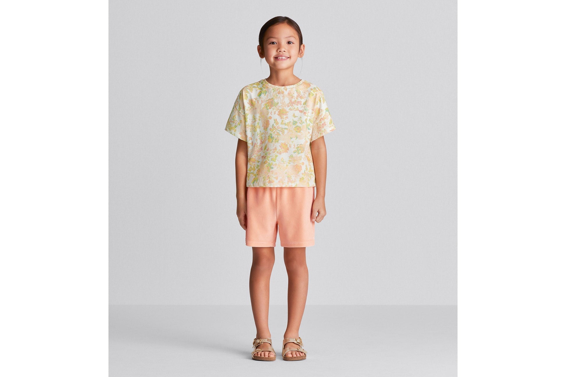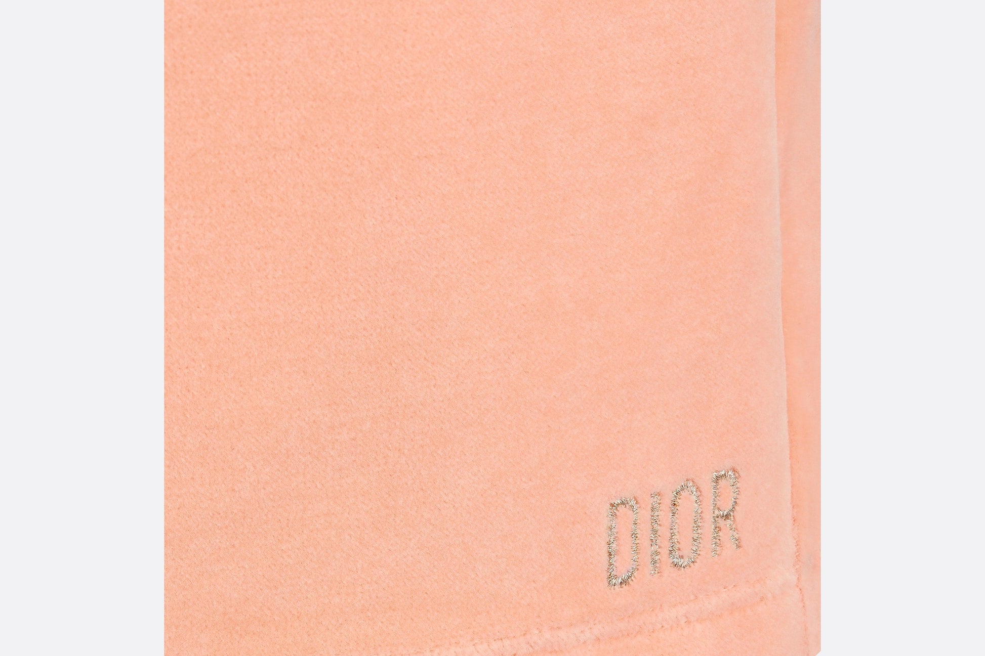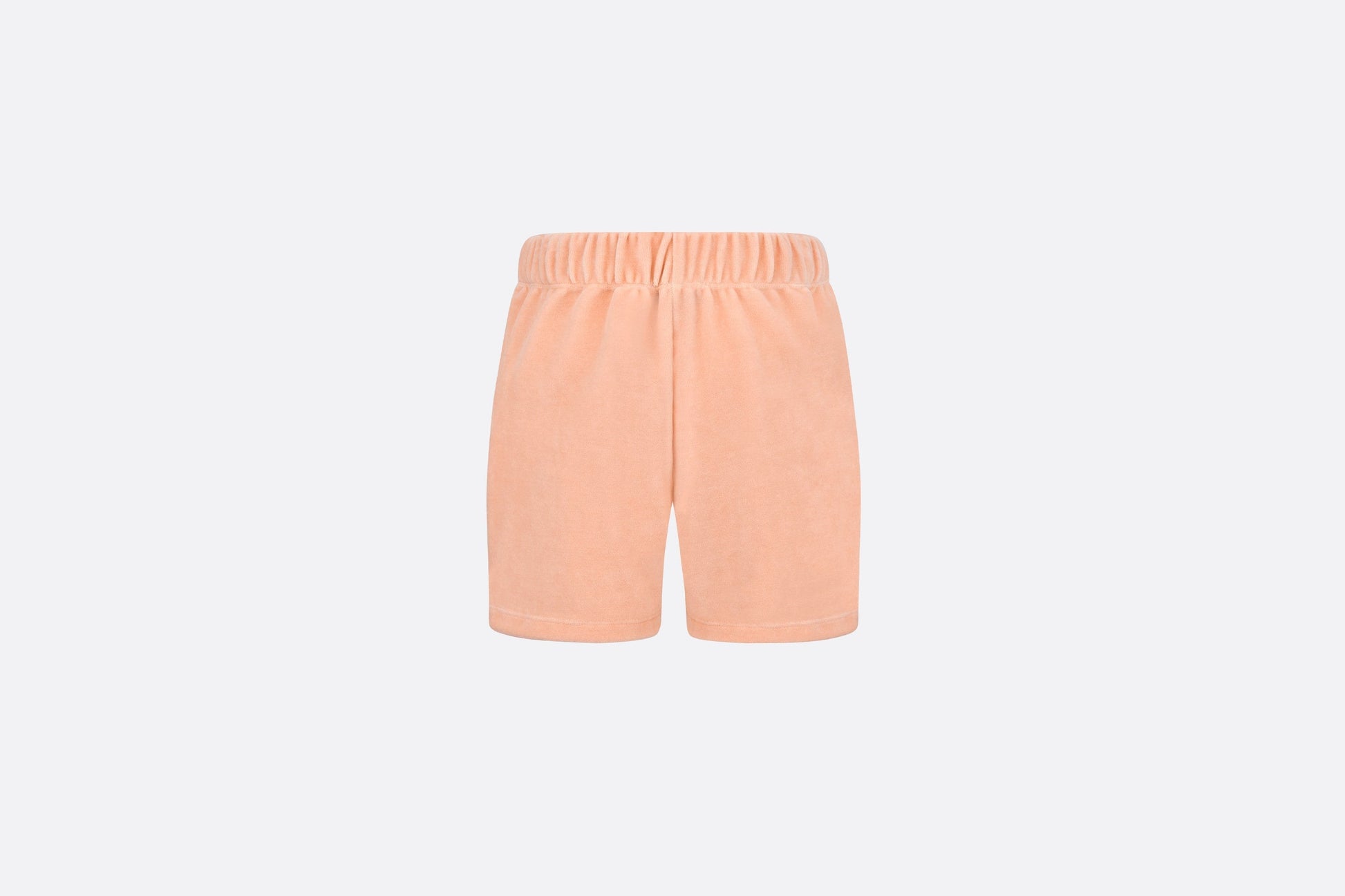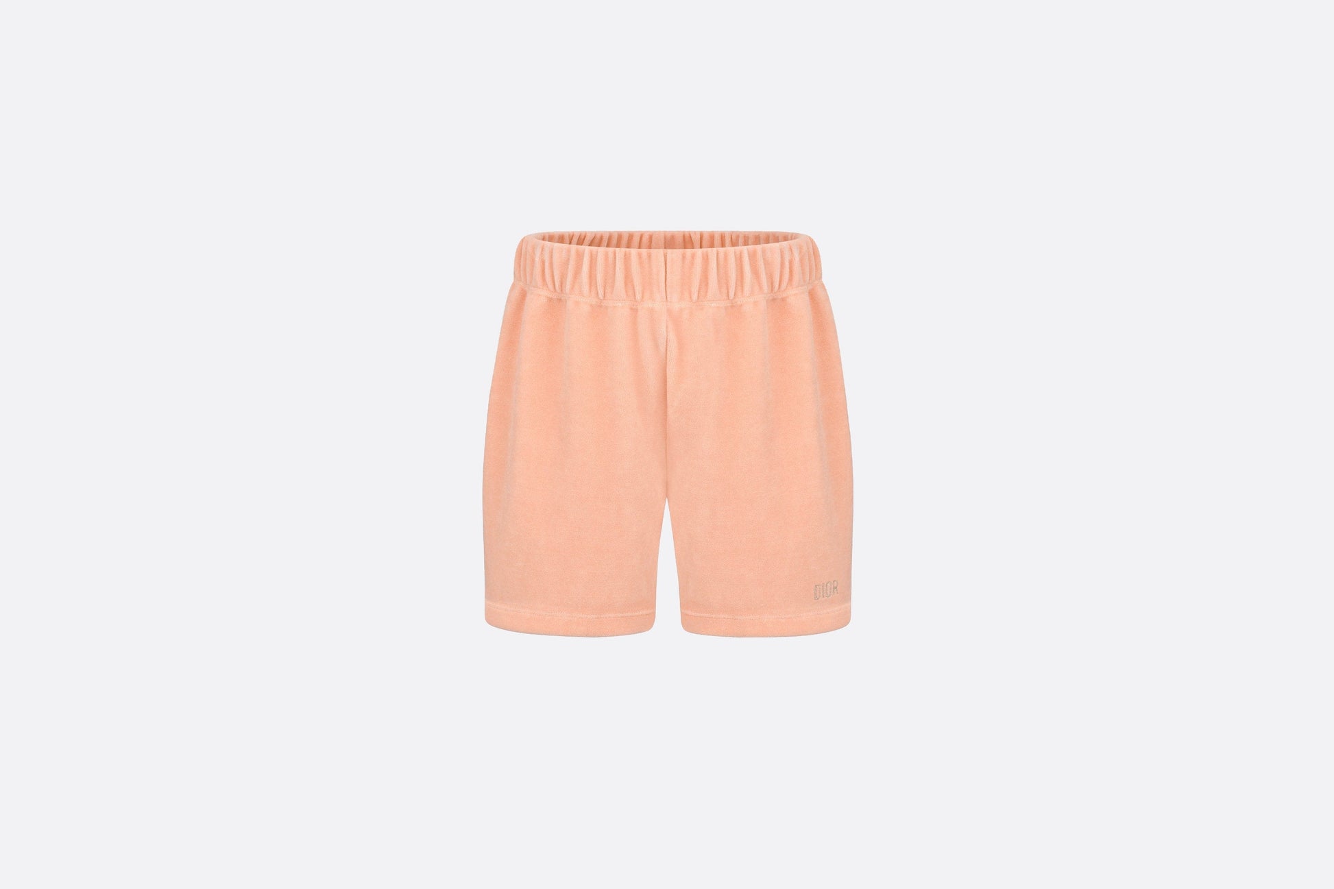 The shorts present a comfortable and lightweight silhouette. Crafted in light coral pink velvet, they feature a stretch waist for an ideal fit. Enhanced by a pale gold-tone Dior embroidery at the bottom, the shorts can be worn with T-shirts from the collection to complete a playful look.