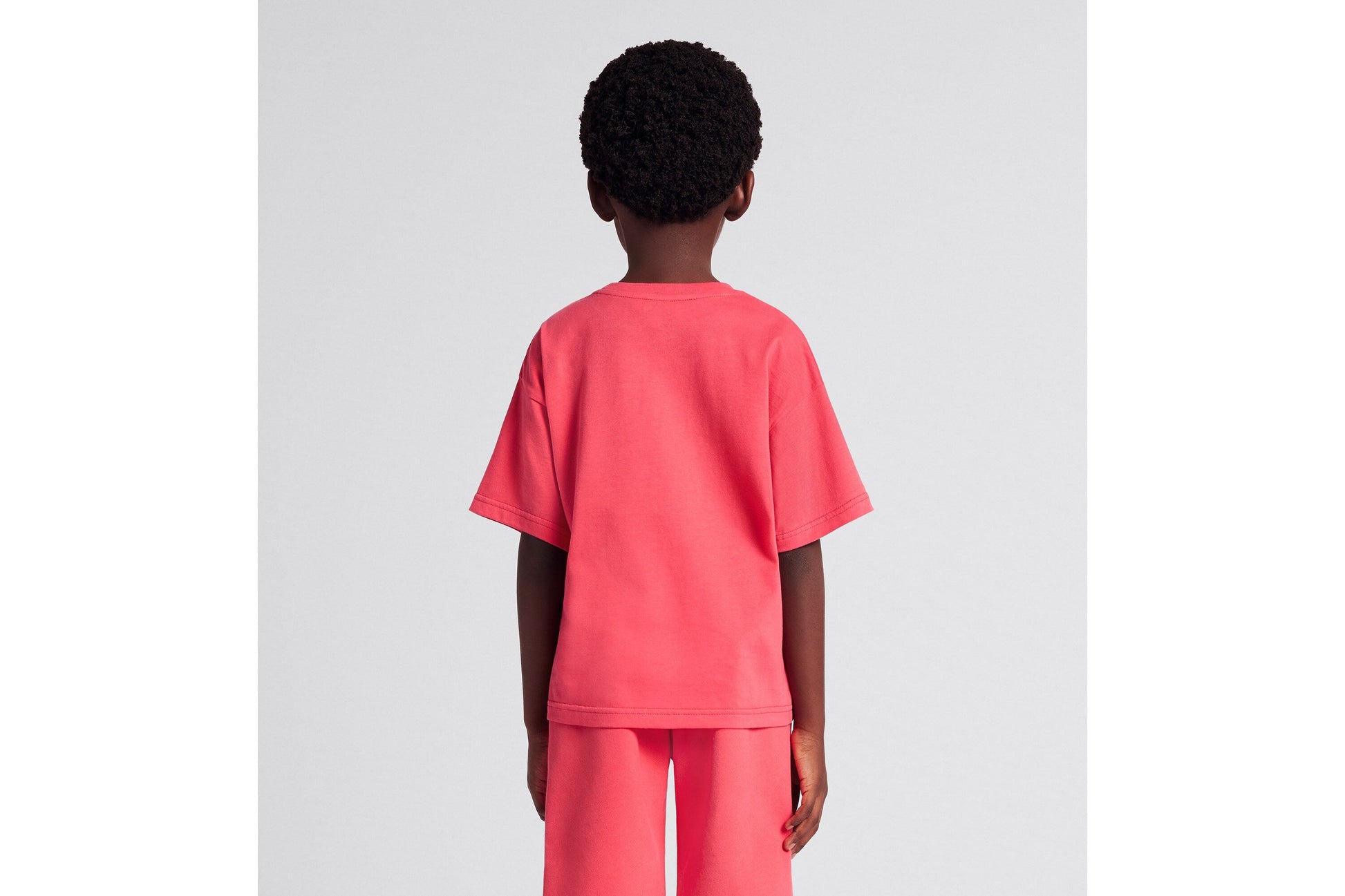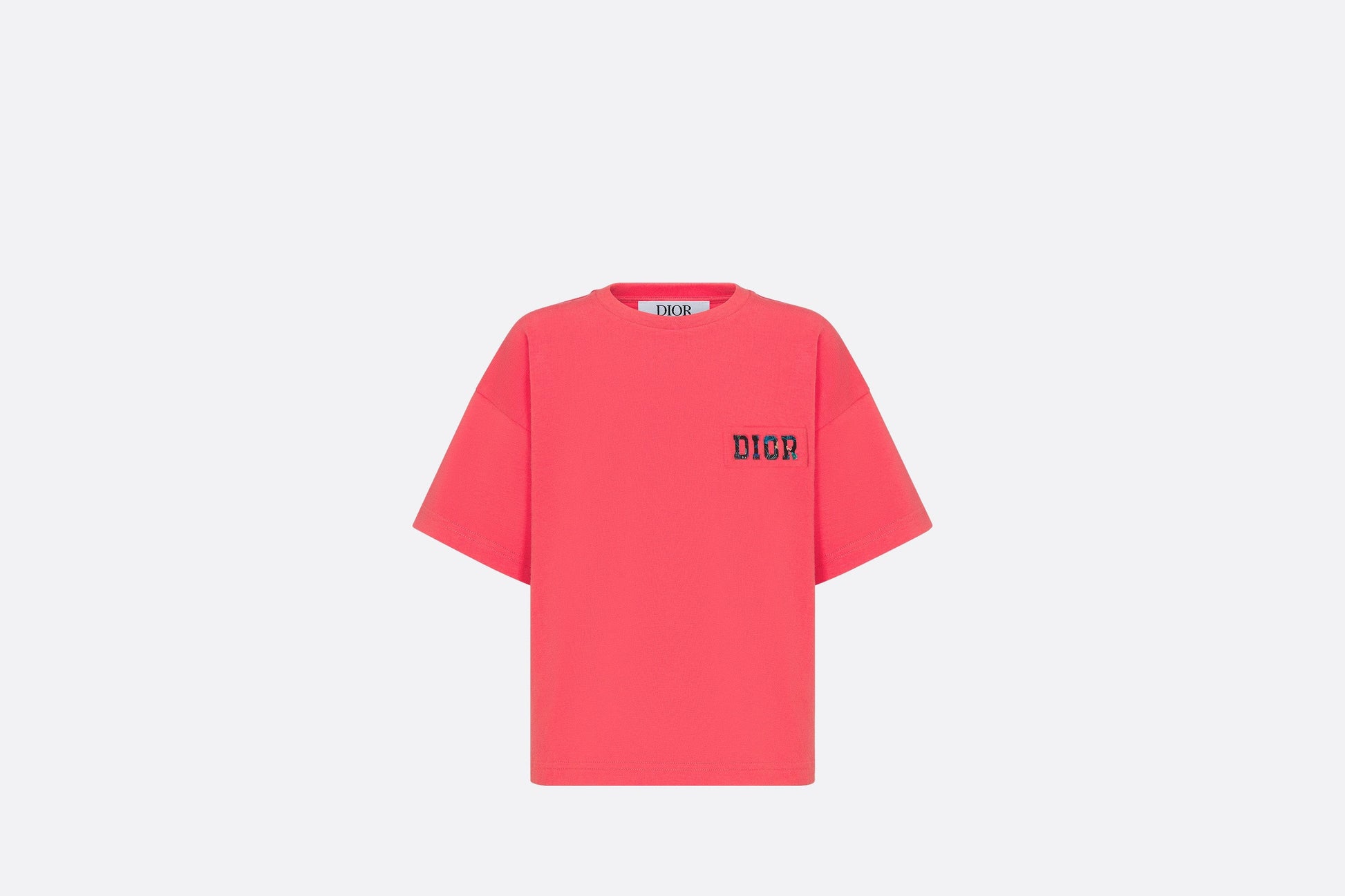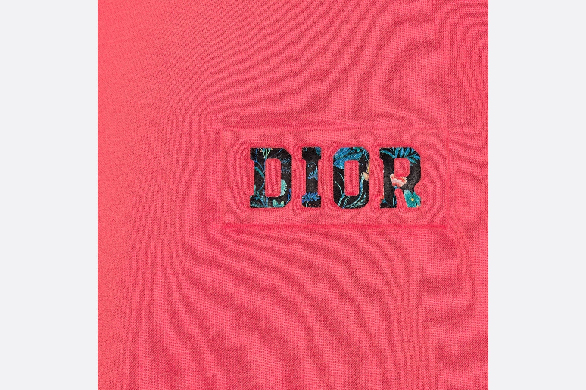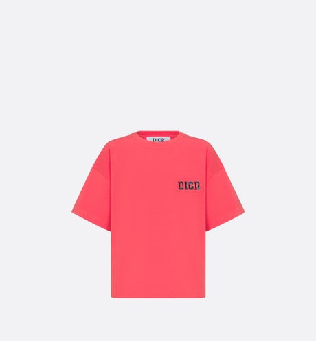 The T-shirt showcases a relaxed cut with dropped shoulders. Crafted in coral cotton jersey, it is enhanced by an embossed, Varsity-inspired rubber Dior patch printed with the multicolor seasonal floral motif. The soft and comfortable T-shirt can be paired with matching shorts from the collection to complete the sportswear look.