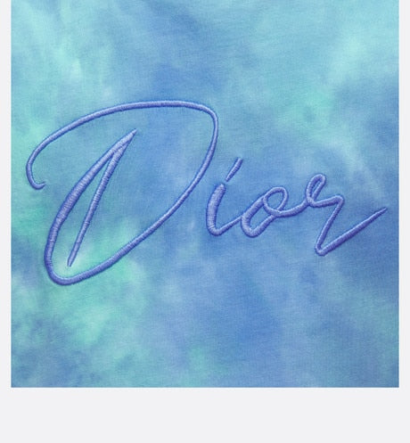 The T-shirt, crafted in cotton jersey, is enhanced by a green and blue tie-dye motif. Boasting a classic cut, it is embellished with a blue 'Dior' embroidery on the front. Featuring a ribbed round neck, the comfortable T-shirt will complete any casual or sportswear outfit.