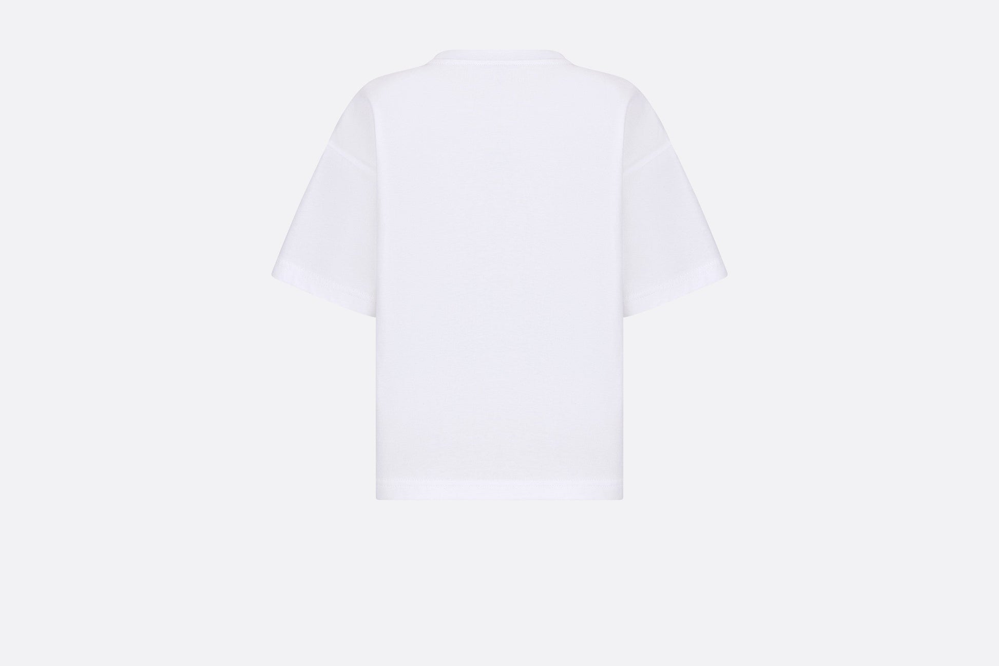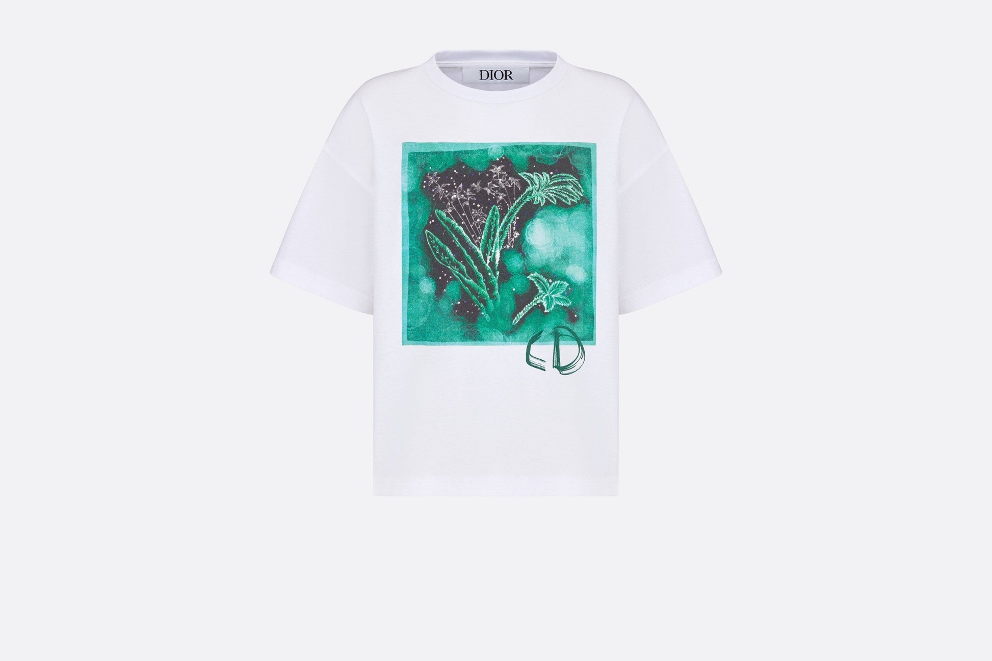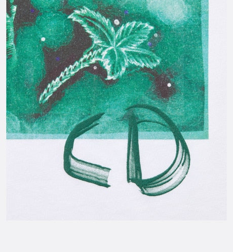 The T-shirt highlights a laid-back cut with dropped shoulders. Crafted in white cotton jersey, it is enhanced by the Dior Botanica print on the front, inspired by the vibrant colors of a tropical scene. A green revisited CD signature completes the design with a playful touch. The comfortable T-shirt can be worn with shorts and sneakers from the collection to complete a dynamic look.