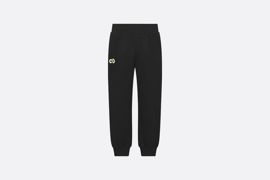 The track pants showcase a laid-back cut. Crafted in black cotton fleece, they are embellished with slanted pockets as well as a stretch waist and cuffs for added comfort. Enhanced by a lime gel revisited CD patch inspired by leopard spots under the right pocket, the track pants will pair effortlessly with the matching hooded sweatshirt from the collection to complete a sportswear look.