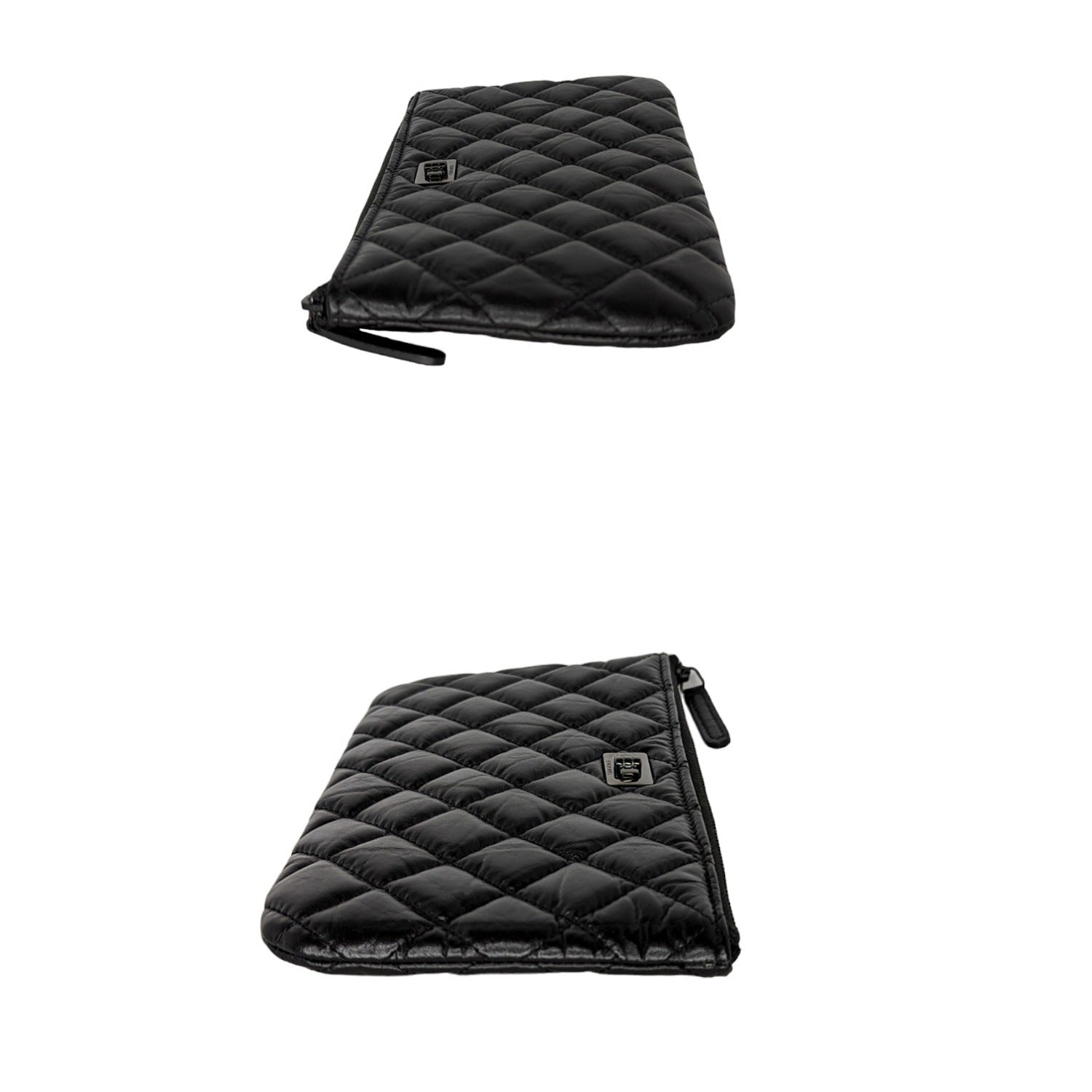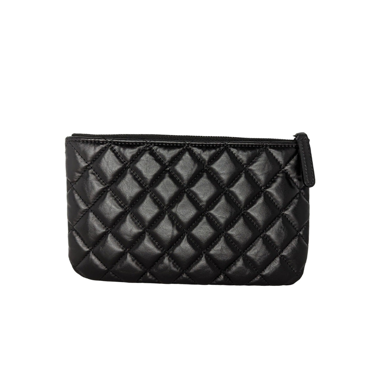Chanel bags Aged Calfskin Quilted Medium Reissue Cosmetic Case So in Black. This stylish cosmetic pouch is crafted of diamond-quilted leather in black with a small black mademoiselle turn-lock embellishment. The top zipper opens to a black fabric interior with a patch pocket and card slots.