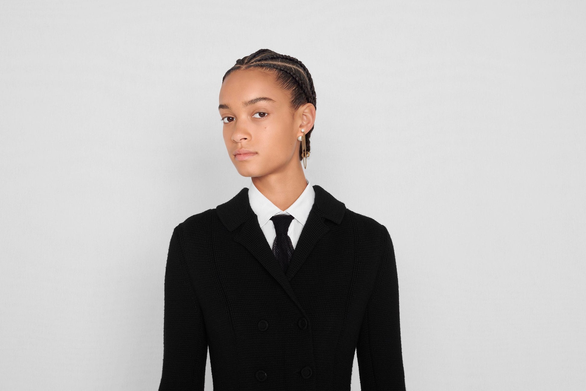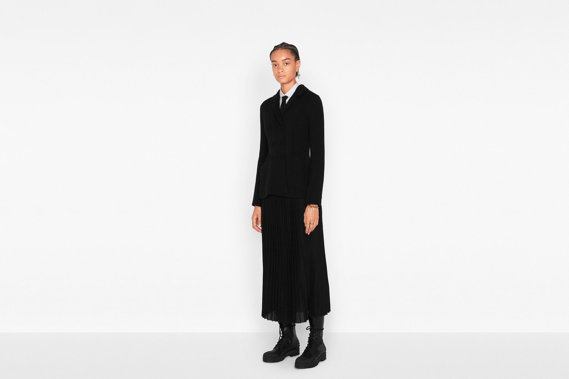 The Bar jacket is an emblematic piece from the New Look collection, designed by Christian Dior in 1947. Reinvented by Maria Grazia Chiuri, it is crafted in wool knit and features a double-breasted button front with covered 'CD' buttons. A notch collar and welt pockets that subtly highlight the waist define the style. This knit Bar jacket can be paired with any look from this season's collection.