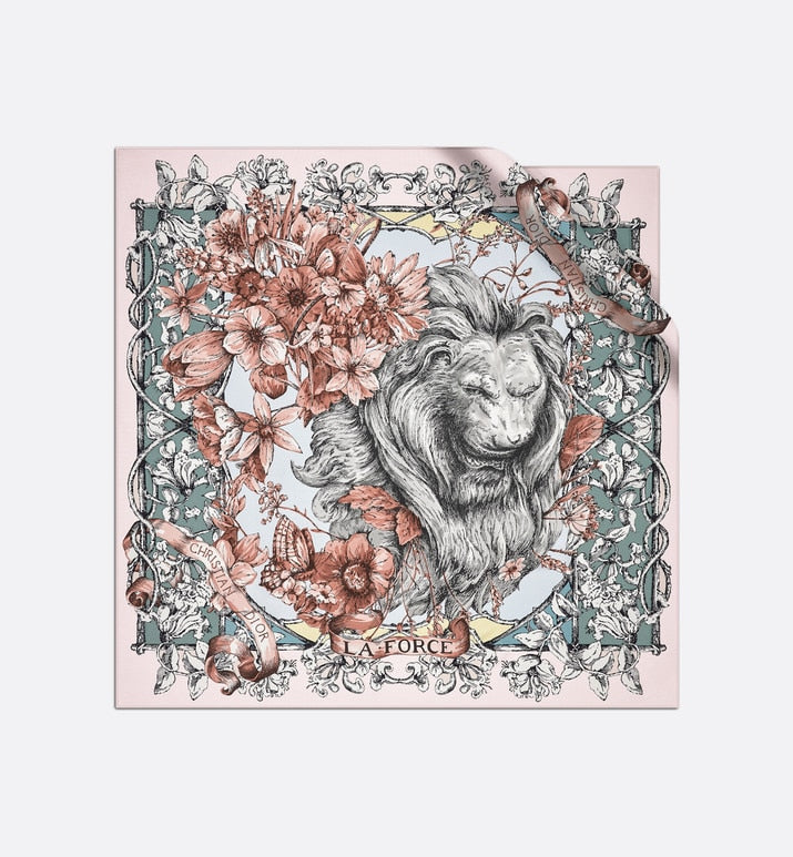 The square scarf is designed this season with the La Force motif, paying tribute to Christian Dior's fascination with astrology. Crafted in Rose des Vents silk twill, it is inspired by a tarot card motif and features hand-rolled edges and a 'CHRISTIAN DIOR' signature. The scarf can be worn around the neck or head to complete the Dior look.