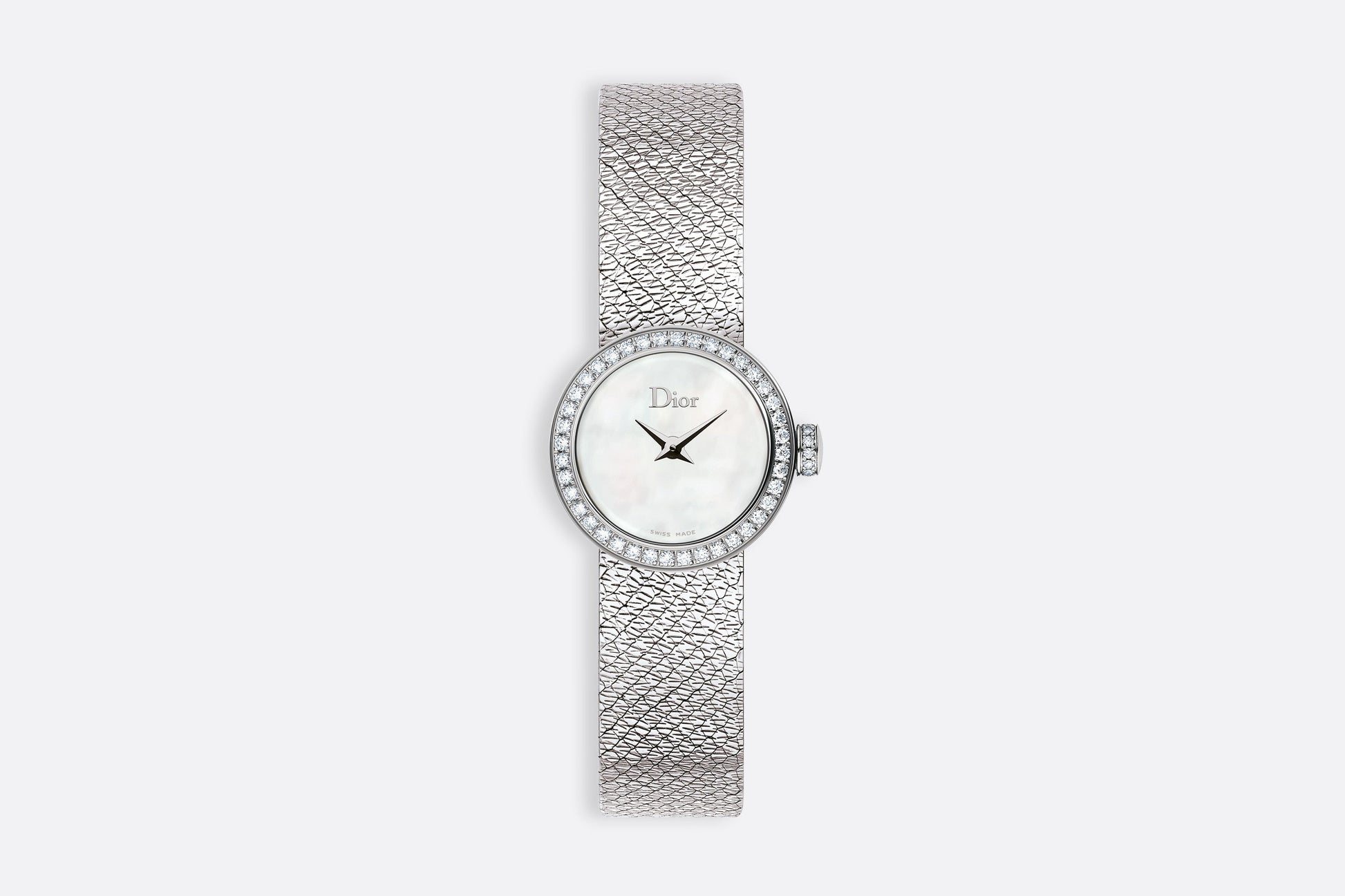 With its Milanese mesh bracelet, the new La D de Dior Satine watch interprets the soft, lustrous qualities of a delicate silk ribbon through the language of watchmaking.