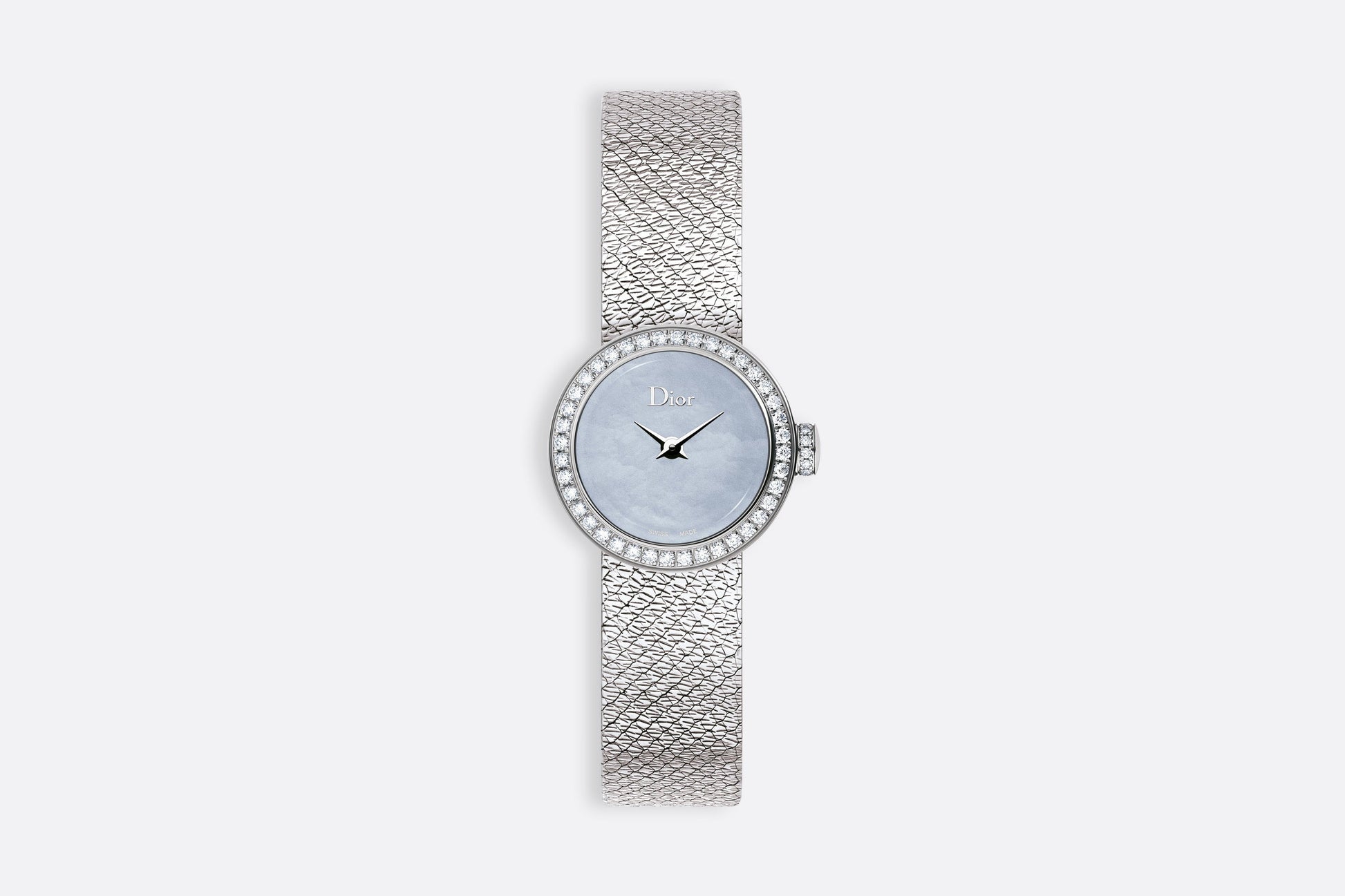 With its Milanese mesh bracelet, the new La D de Dior Satine watch interprets the soft, lustrous qualities of a delicate silk ribbon through the language of watchmaking.