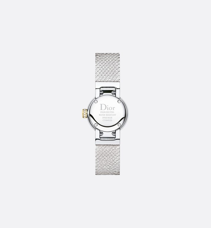 La Mini D de Dior Satine • Ø 19 mm, Steel, Yellow Gold, Malachite and Diamonds