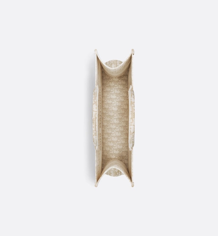 Large Dior Book Tote • White and Gold-Tone Dior Oblique Embroidery (42 x 35 x 18.5 cm)