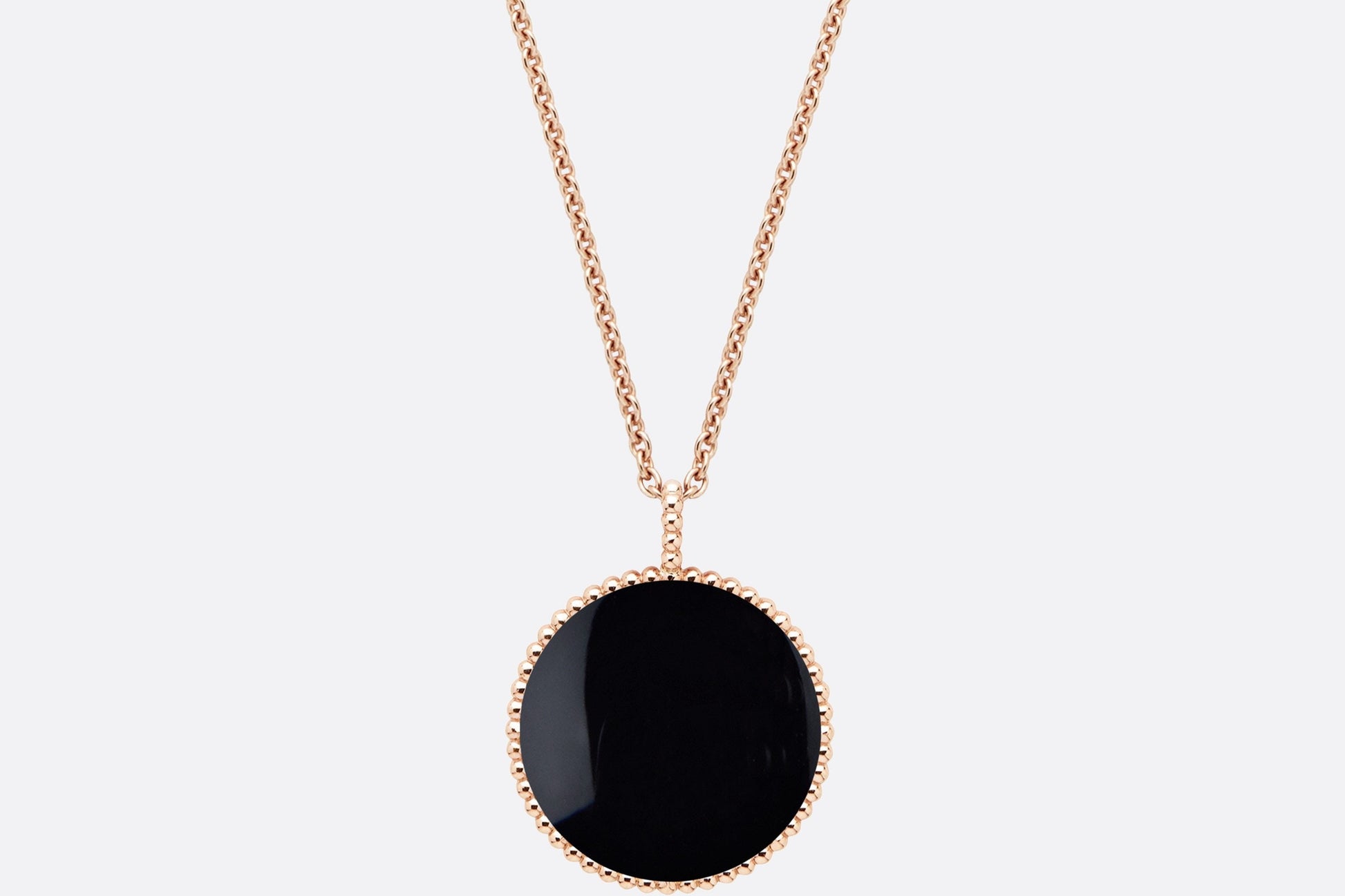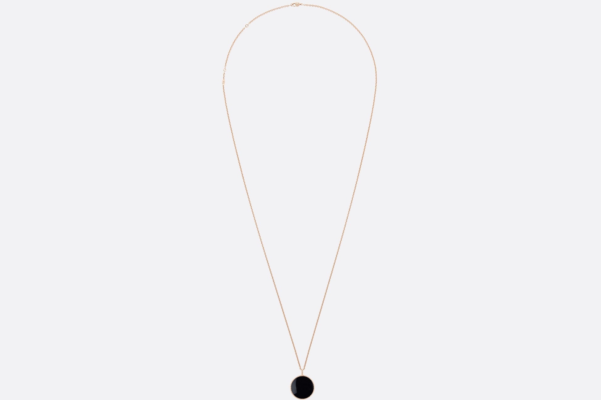 18K Pink gold Diamond (0.22 carat*) Onyx 85 cm / 33.5 inches in length with small rings to adjust the chain to either 80 cm / 31.5 inches or 75 cm / 29.5 inches Motif diameter: 25 mm / 1 inch The medallion can be worn on a long chain or a short double chain
