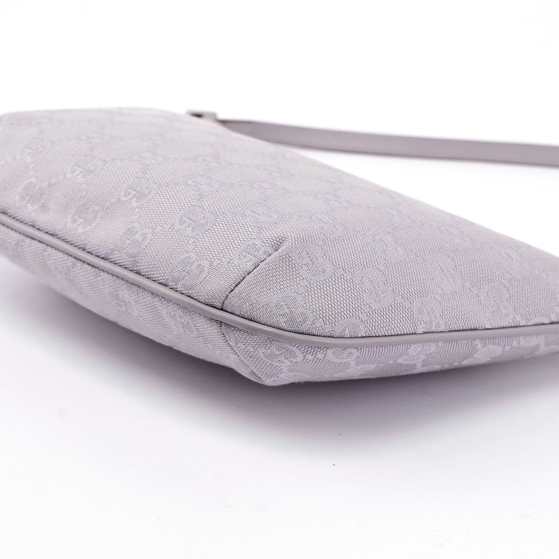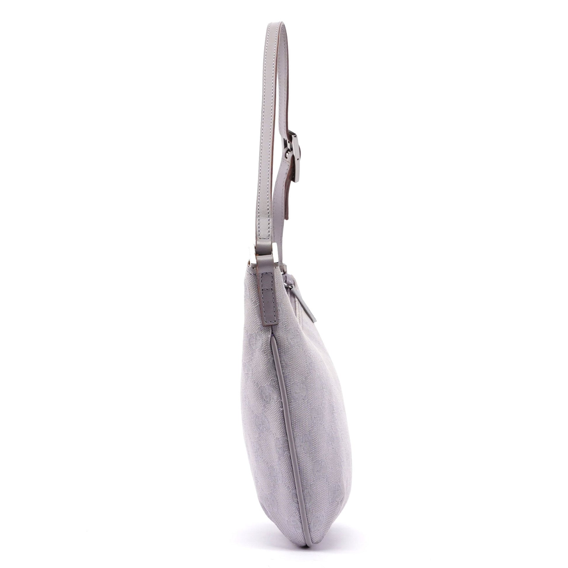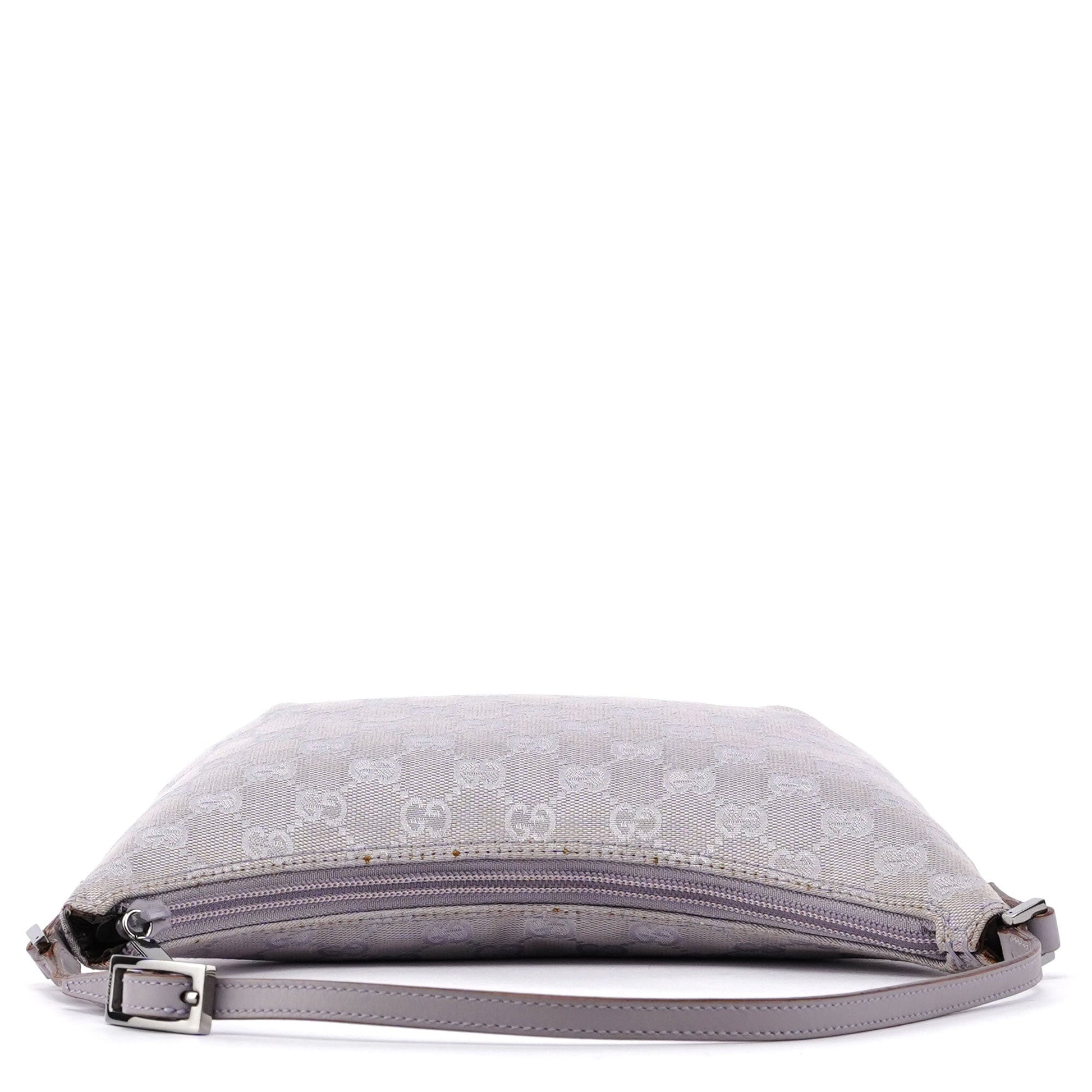 Designed by Tom Ford in the late 1990's, this Gucci GG shoulder bag is crafted from the iconic lavender GG monogram canvas with tonal leather trim. Its silver-tone hardware adds a touch of elegance, while the satin-lined interior features a convenient pocket for organization.