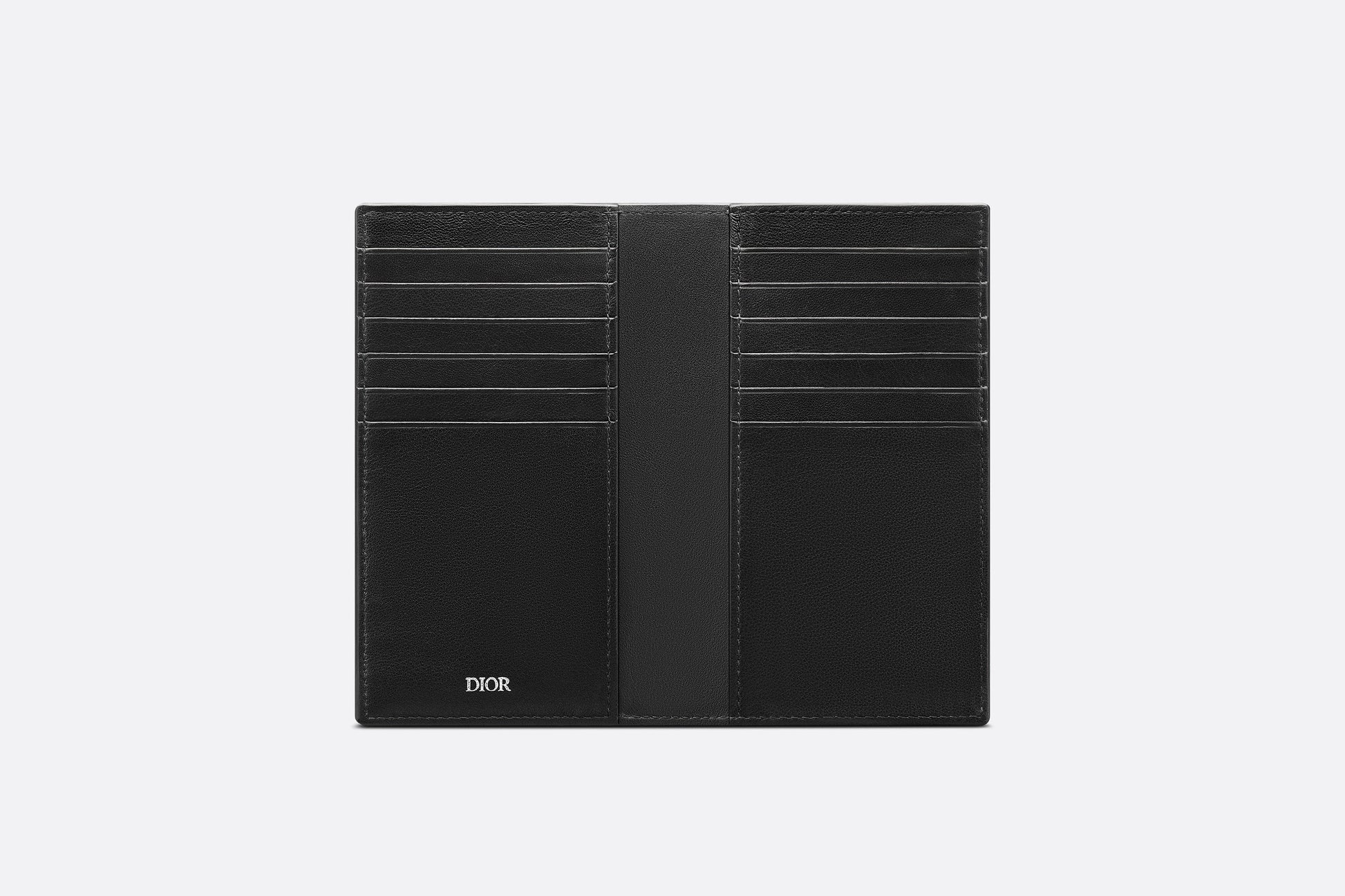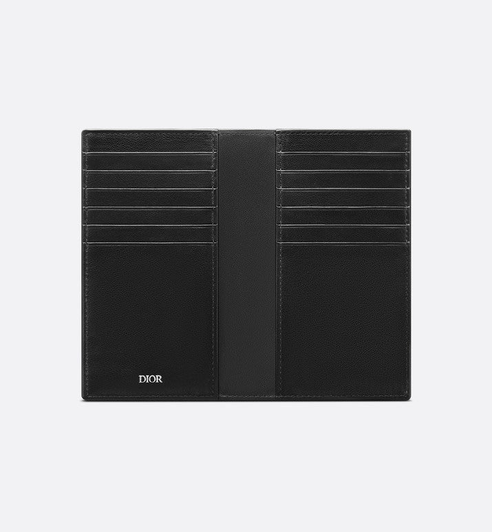 The long bi-fold card holder is a practical piece with refined charm. Crafted in black CD Diamond canvas inspired by House archives, the card holder is embellished with a ruthenium-finish brass Dior signature on the front. The style has a tonal smooth calfskin interior revealing six slots on either side as well as two additional compartments to house receipts and bills. The elegant card holder will slip easily into any pocket.
