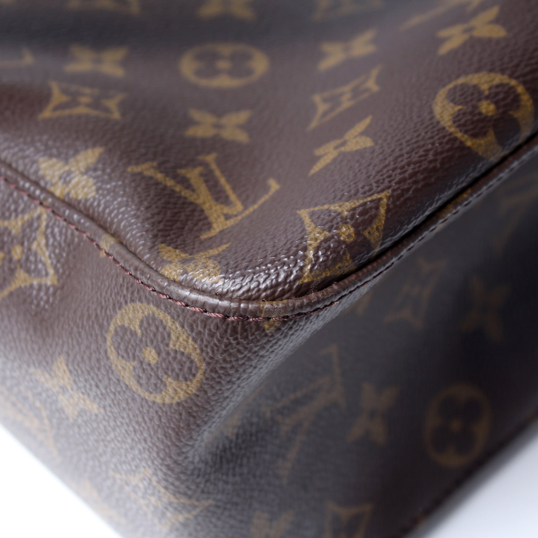 Exterior: The exterior Monogram coated canvas is free of any rips or cracks. The corners show minor signs of wear