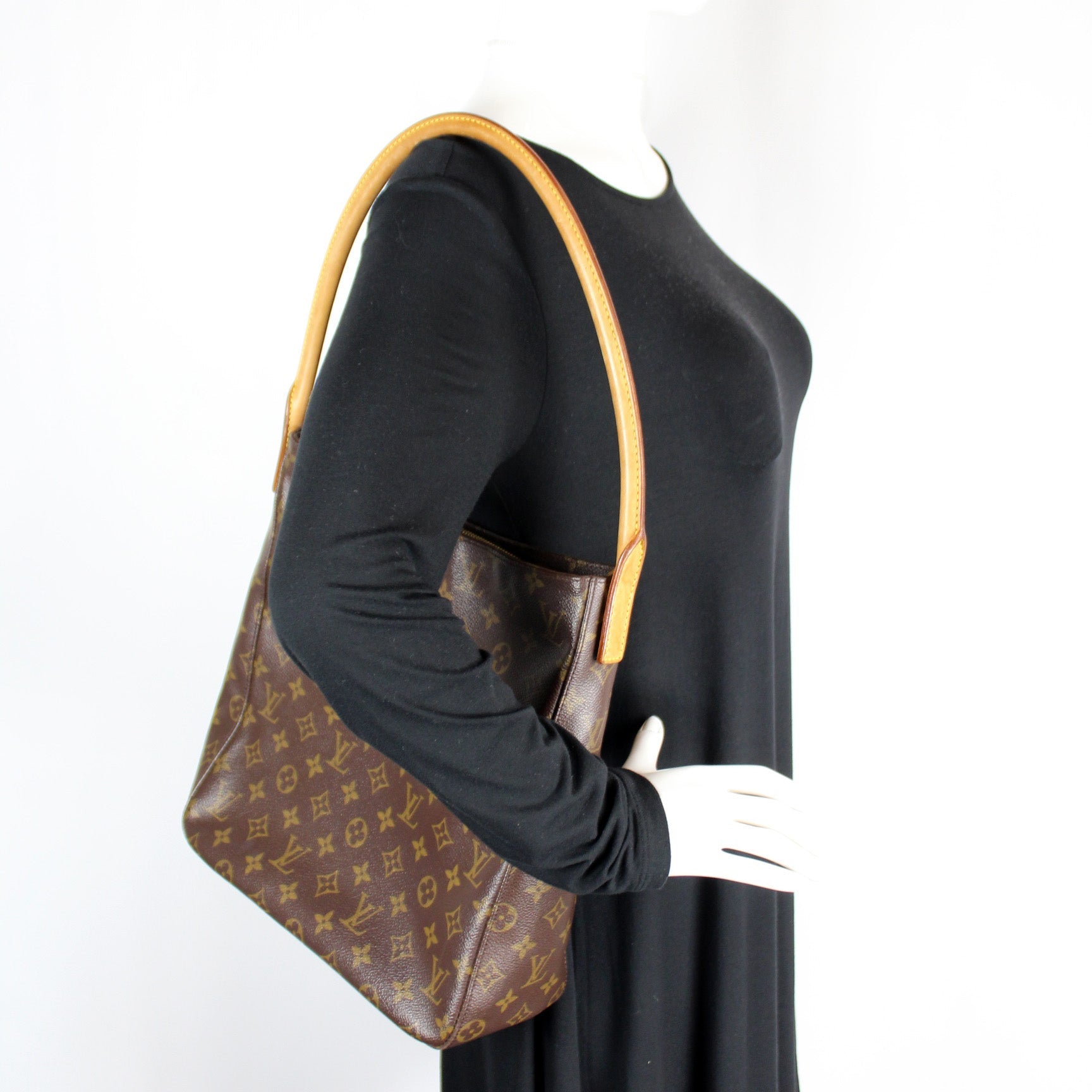 This Louis Vuitton Looping GM is guaranteed 100% . The exterior is in the classic Louis Vuitton Monogram coated canvas.