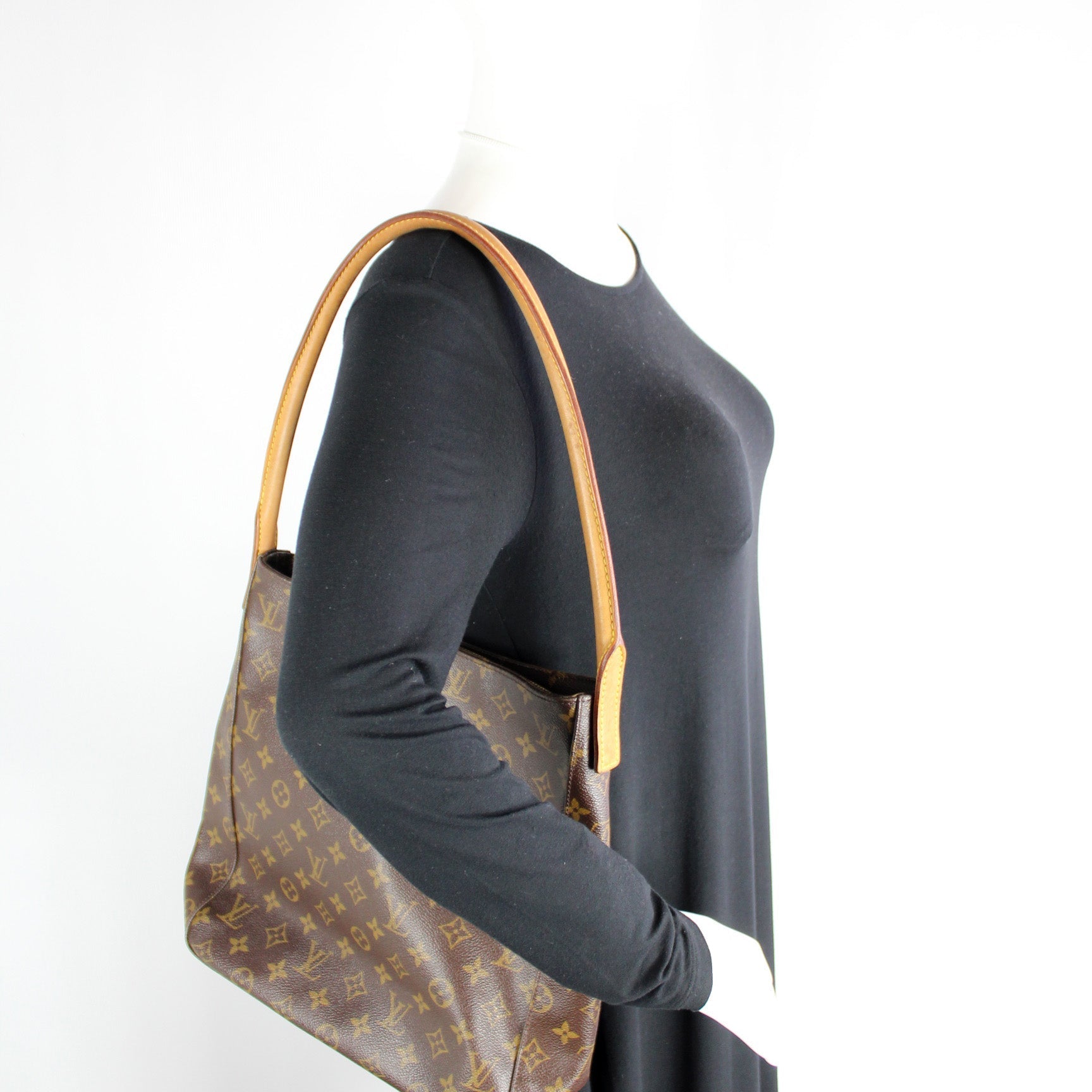 This Louis Vuitton Looping GM is guaranteed 100% . The exterior is in the classic Louis Vuitton Monogram coated canvas.