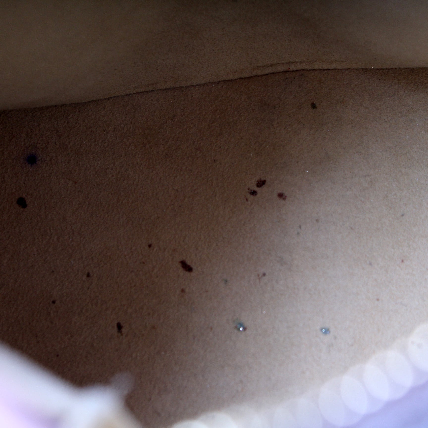 Interior: The interior is free of rips or tears. The interior features one zipper pocket and one open pocket. There is minor discoloration to the interior as pictured.