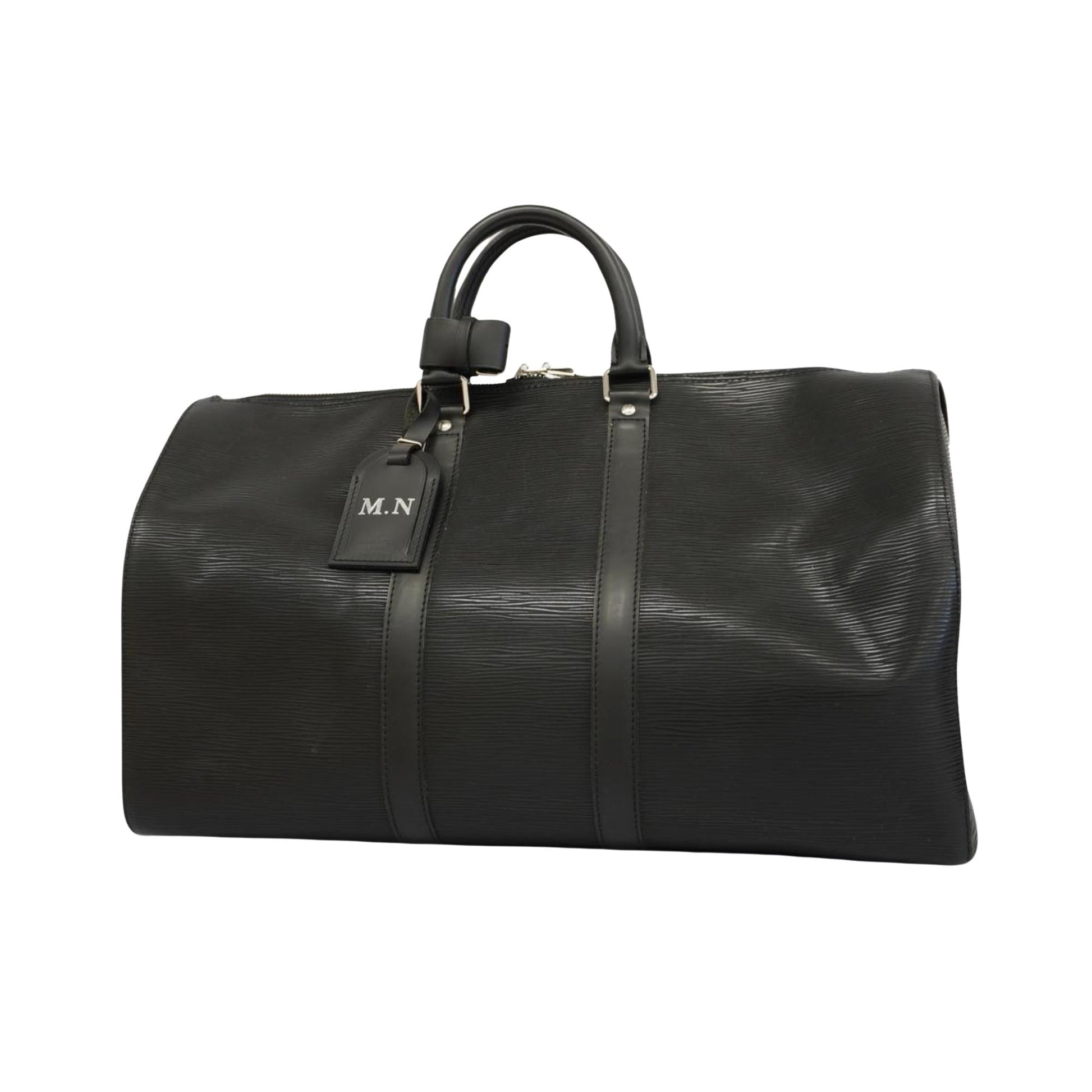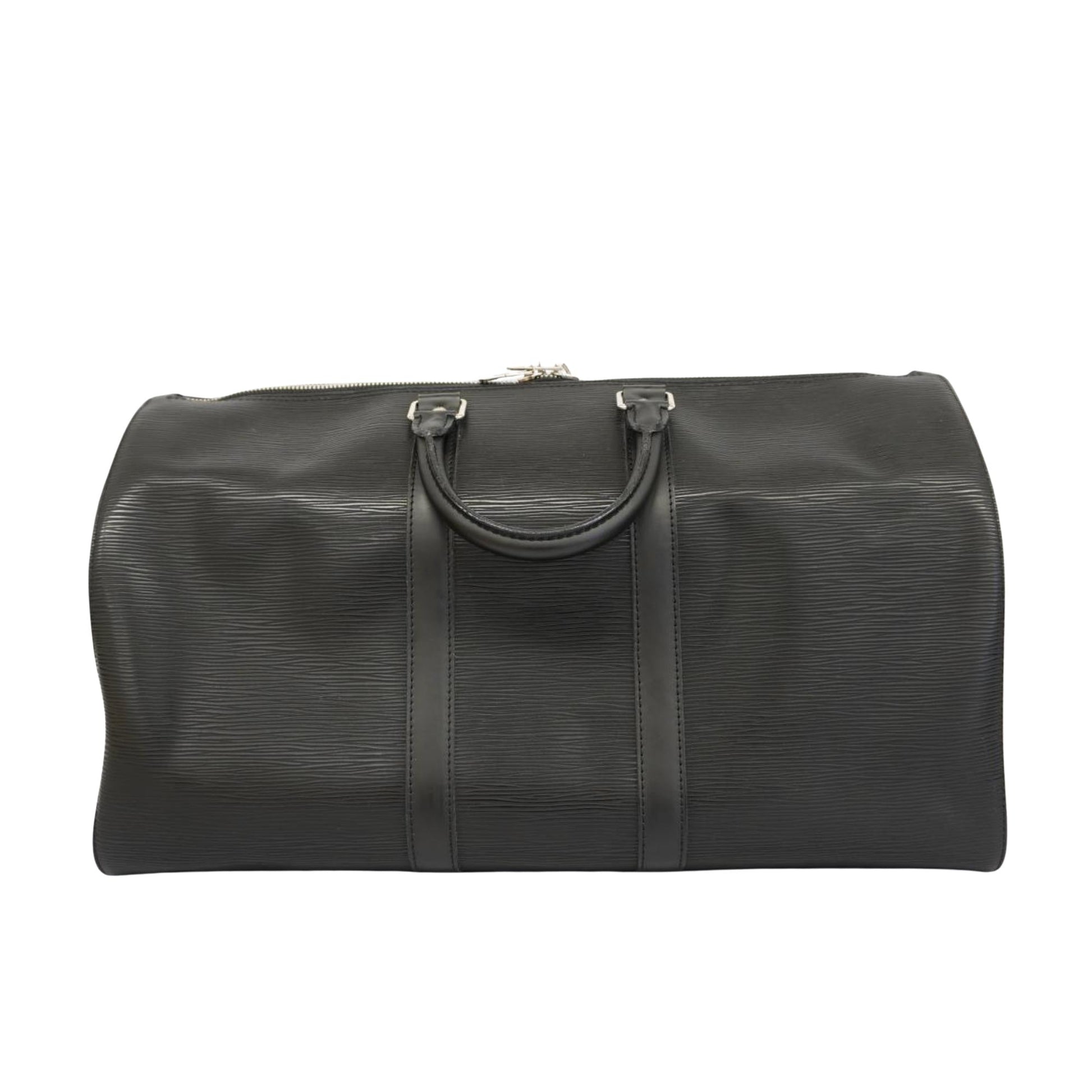 Brand - Louis VuittonModel - Keepall 45Color - BlackMaterial - LeatherInclusions - Dust bag, Key, Name tag, Padlock, Poignee (handle holder)Dimensions - W47 × H27 × D20cmSerial number - NACountry of origin - FranceCondition - AB - good condition.The Louis Vuitton Keepall 45 travel bag in black Epi leather embodies the perfect blend of luxury and functionality. Crafted from Louis Vuitton's prestigious Epi leather, this bag offers exceptional durability and sophisticated style. Its compact size makes it the ideal companion for short trips or weekend getaways, while its iconic Keepall silhouette expresses timeless elegance.The interior shows a few light stains, while the exterior has a few light scratches on the wrist and slight loss of shape. Despite this, the item is in very good condition.We recommend that you look at all the pictures before making your purchase to ensure that you are satisfied with the condition of the item.