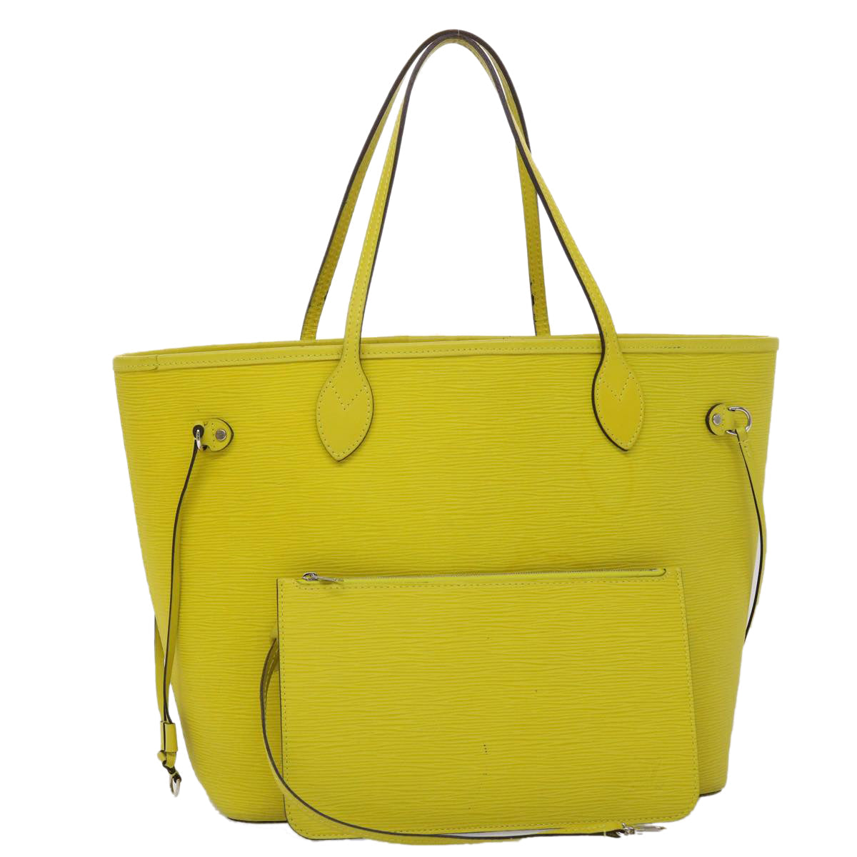 Brand - Louis VuittonModel - Neverfull MMColor - YellowMaterial - LeatherInclusions - dust bag/pouchDimensions - W46cm x H30cm x D17cmSerial number - CA0134Country of origin - EspagneCondition - AB - good condition.This Neverfull MM tote combines timeless design with iconic details. Featuring a natural cowhide leather trim, this chic epi leather model offers ample storage capacity without being too bulky. On the side, the laces can be tightened elegantly or loosened in a casual spirit. The slim, comfortable handles allow the bag to be carried over the arm or shoulder. Lined in colorful textile, it features a removable pouch that can be used separately or as an additional pocket.The external condition reveals a slight loss of shape, rubbing, partial staining, and scratches on the surface. The metal fittings exhibit minor scratches. Internally, there is slight rubbing and partial dirt accumulation. Although there is no pocket, the corners also display signs of slight rubbing.We recommend that you look at all the photos before making your purchase to ensure that you are satisfied with the condition of the item.