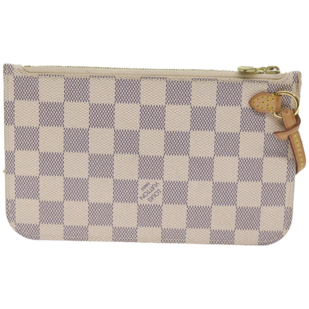 Brand - Louis VuittonModel - Neverfull pouchColor - WhiteMaterial - CanvasInclusions - /Dimensions - W19cm x H12cmSerial number - AR3104Country of origin - FranceCondition - AB - good condition.The Louis Vuitton White Damier Azur Neverfull Pouch is a chic and versatile accessory that complements the iconic Neverfull tote perfectly. Crafted from the signature Damier Azur canvas in crisp white, this pouch exudes timeless elegance and sophistication. Its compact size makes it ideal for storing essentials such as makeup, cards, or keys, while the durable canvas material ensures longevity and style. The exterior shows slight rubbing and staining on the surface, with slight rubbing noticeable at the corners and handle, which also has slight sunburn and stains. Additionally, there are slight scratches on the metal fittings. Inside, there is slight rubbing, particularly in the pockets, and a fragrance smell is present.We recommend that you look at all the photos before making your purchase to ensure that you are satisfied with the condition of the item.