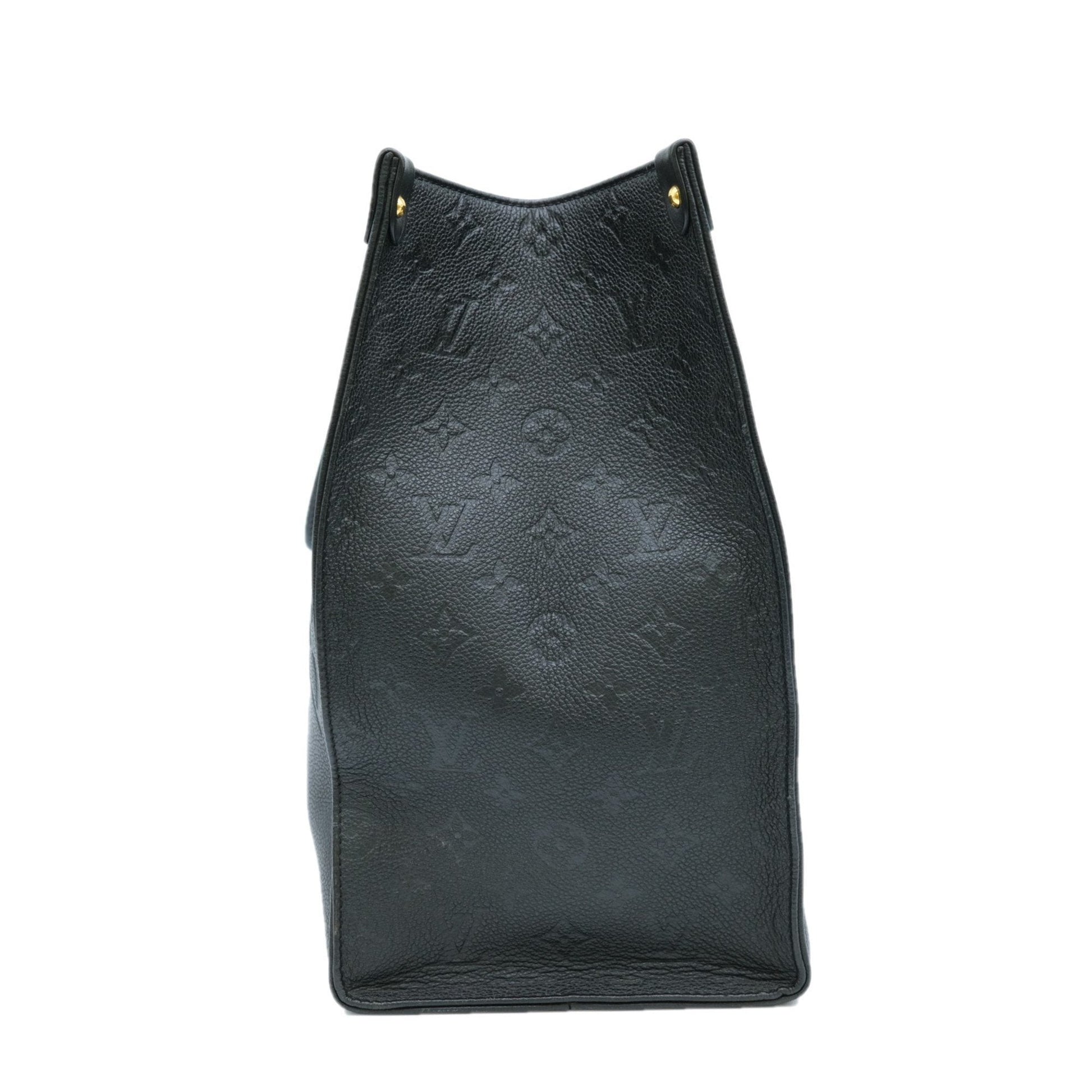 Brand - Louis VuittonModel - Onthego GMColor - BlackMaterial - LeatherInclusions - /Dimensions - 31cm x 41cm x 17cmSerial number - DU4200Country of origin - FranceCondition - AB - good condition.Discover the modern elegance of Louis Vuitton's Onthego GM Cabas bag in Monogram Empreinte, in a sophisticated black hue. This bag embodies the perfect marriage between the brand's iconic style and a contemporary aesthetic. Designed for dynamic, modern women, the Cabas Onthego GM offers generous space for all your daily essentials, while adding a touch of luxury to your outfit. The interior shows a few light stains, while the exterior shows light scratching and rubbing at the corners and on the bag's wrist and slight loss of shape. Despite this, the item is in very good condition.We recommend that you look at all the pictures before making your purchase to ensure that you are satisfied with the condition of the item.