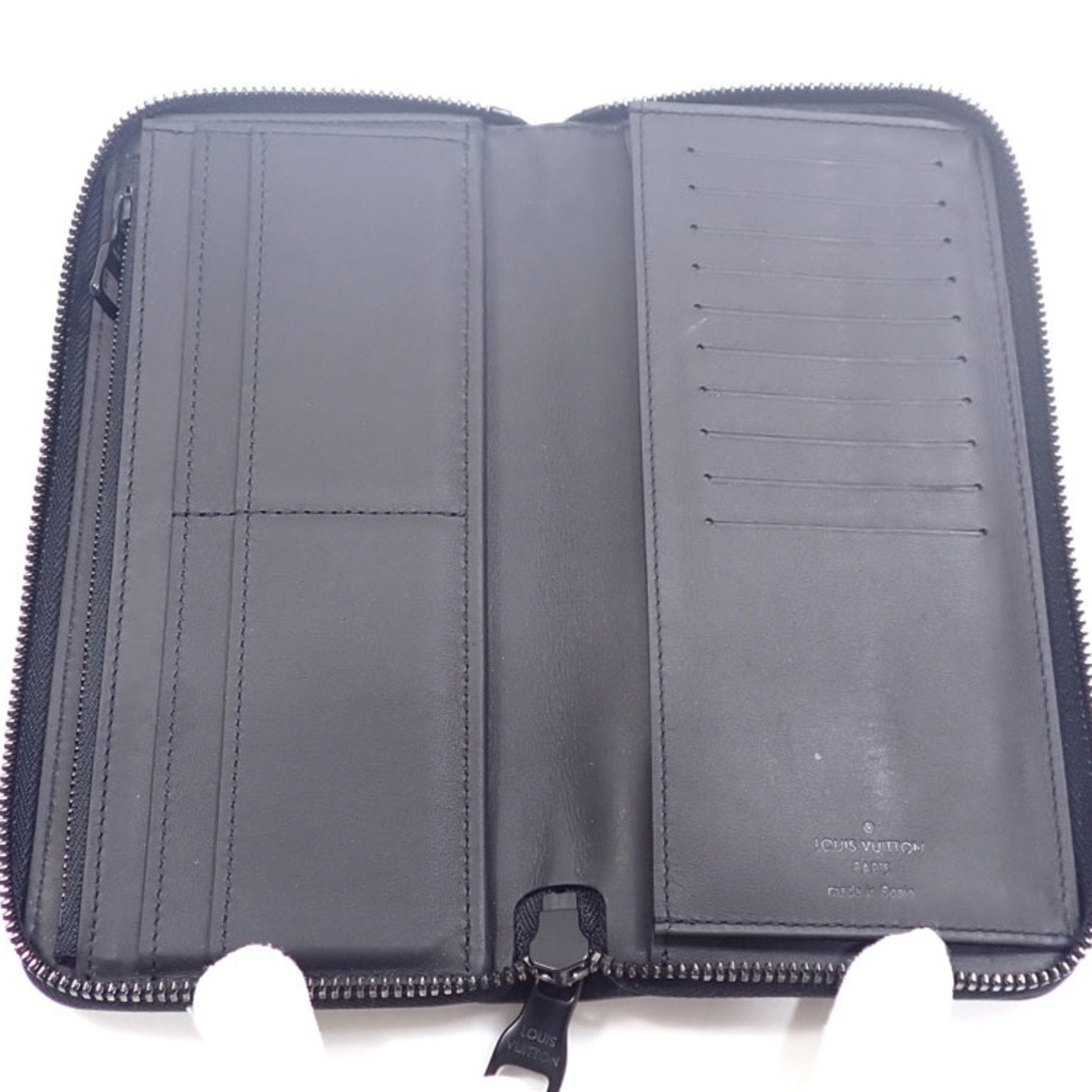 Brand - Louis VuittonModel - Zippy Wallet VerticalColor - BlackMaterial - LeatherInclusions - /Dimensions - 20cm x 10cm x 2cmSerial number - A2231805Country of origin - FranceCondition - AB - good condition.This elegant Zippy Vertical wallet from Louis Vuitton holds credit cards, bills and change. Featuring a full-zip closure, this sleek design is crafted in supple Taurillon leather, discreetly enhanced by an embossed Monogram motif. The interior reveals numerous card slots and pockets for papers and receipts, as well as a zippered coin compartment.The inside of the item shows a slight stain, while the outside shows a slight scratch. Despite this, the item remains in very good condition.We recommend that you look at all the pictures before making your purchase to ensure that you are satisfied with the condition of the item.