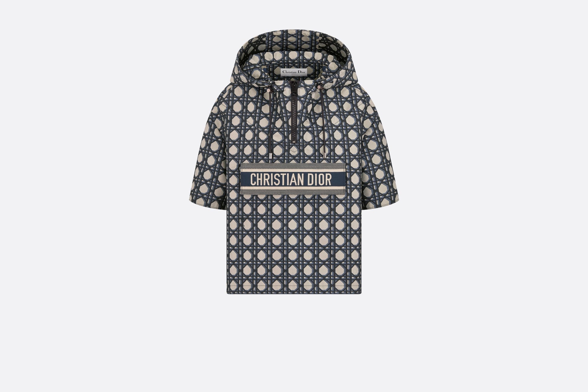 The hooded anorak showcases the House's hallmark Macrocannage motif. Crafted in navy blue technical taffeta, the design features a zipped neckline, a piped pocket, two side pockets and a flap adorned with the Christian Dior signature. Its cropped and relaxed short-sleeved silhouette will complement any casual attire this season, and can be coordinated with other Macrocannage creations to complete the look.