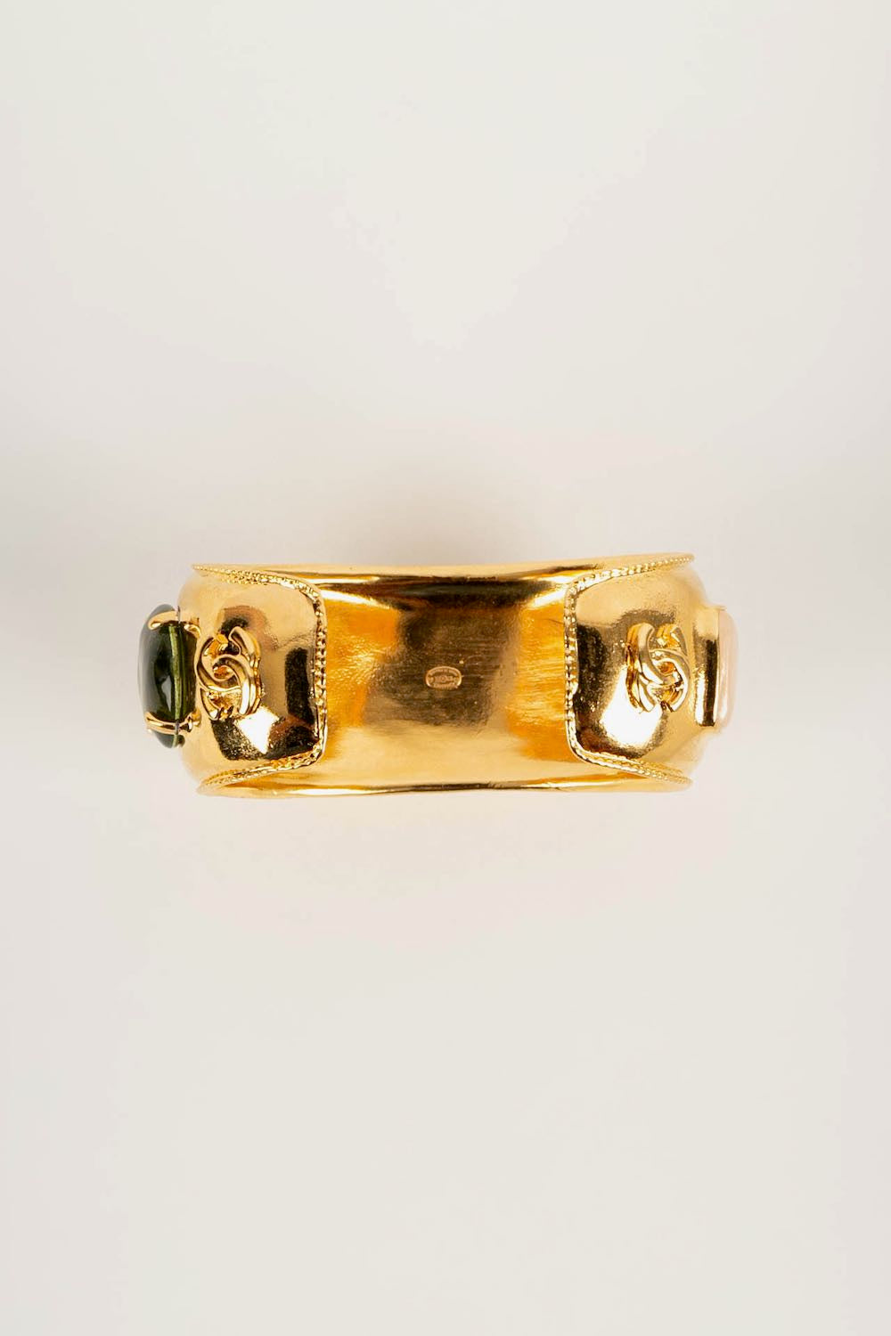 CHANEL -(Made in France) Manchette en métal doré et pâte de verre. Collection Automne/Hiver 1997.