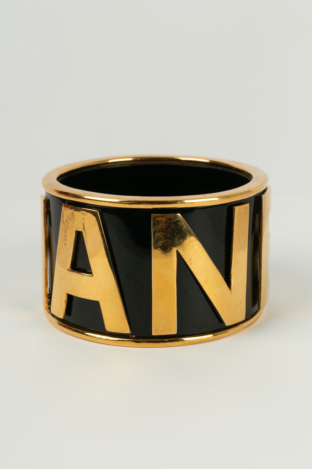 CHANEL -Manchette en bakélite noire et métal doré. Collection Prêt-à-Porter Printemps Eté 1990/1991.