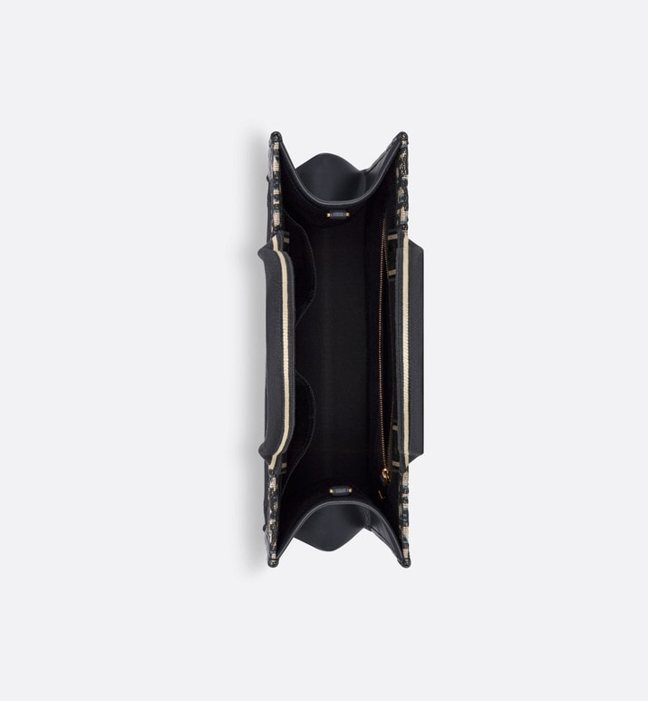 Medium Dior Book Tote • Blue Dior Oblique Embroidery and Calfskin (36.5 x 28 x 17.5 cm)