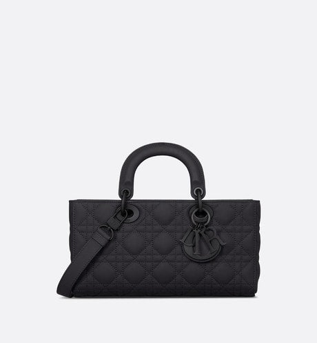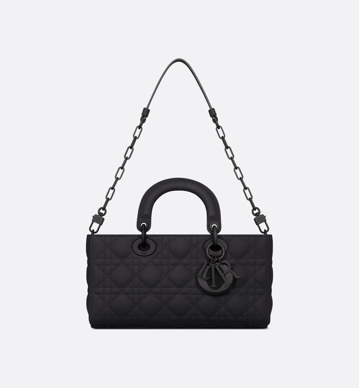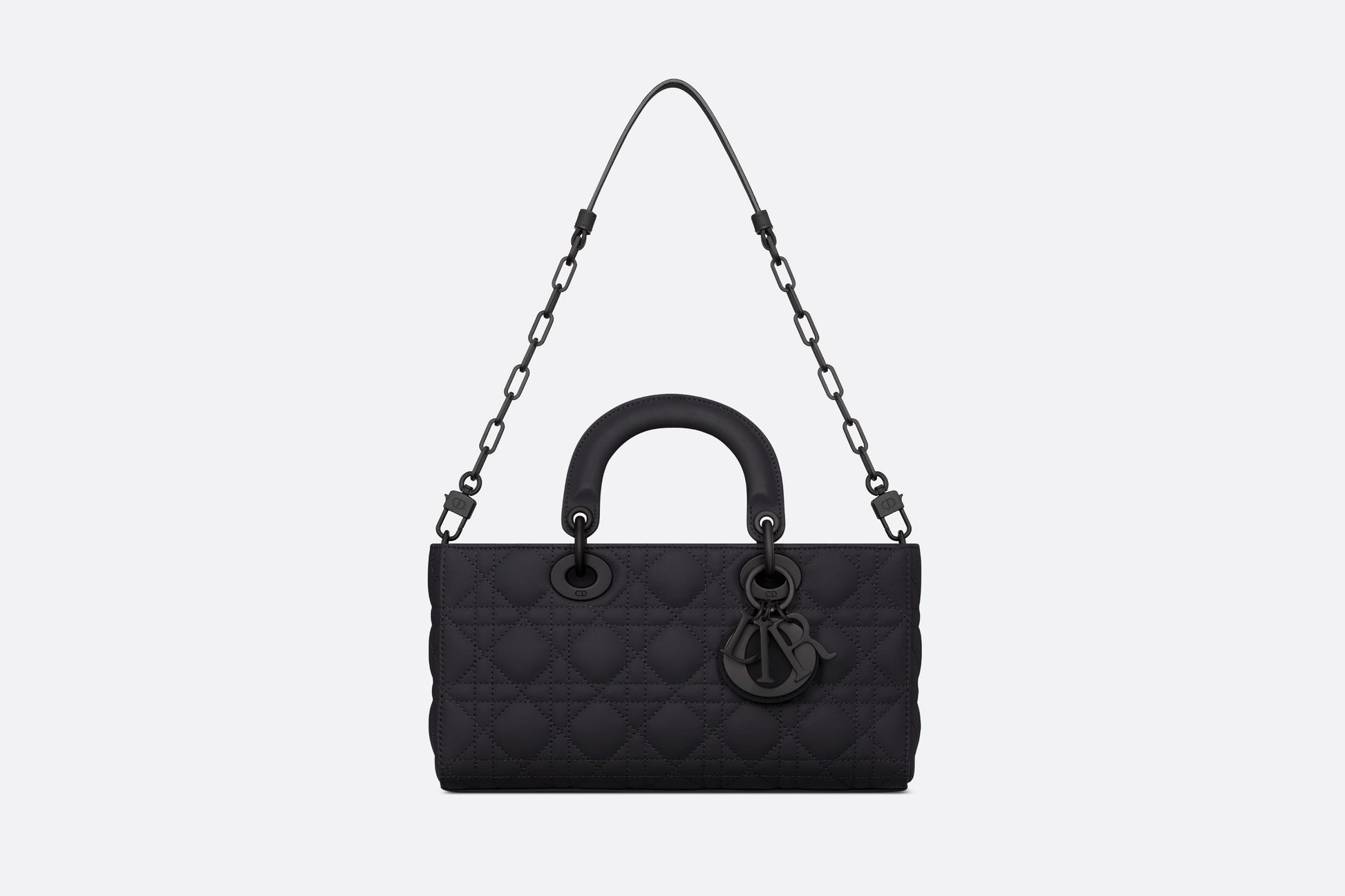The Lady D-Joy bag captures the House's vision of elegance and beauty by showcasing the iconic streamlined aesthetic of the Lady Dior line. Crafted in ultramatte black calfskin with Cannage stitching, the legendary quilted texture is immediately recognizable. The medium style is enhanced by tonal metal D.I.O.R. charms that add an elegant touch. Featuring one removable chain strap and another adjustable and removable leather strap, the Lady D-Joy bag can be carried by hand, worn over the shoulder or crossbody as a daily companion.