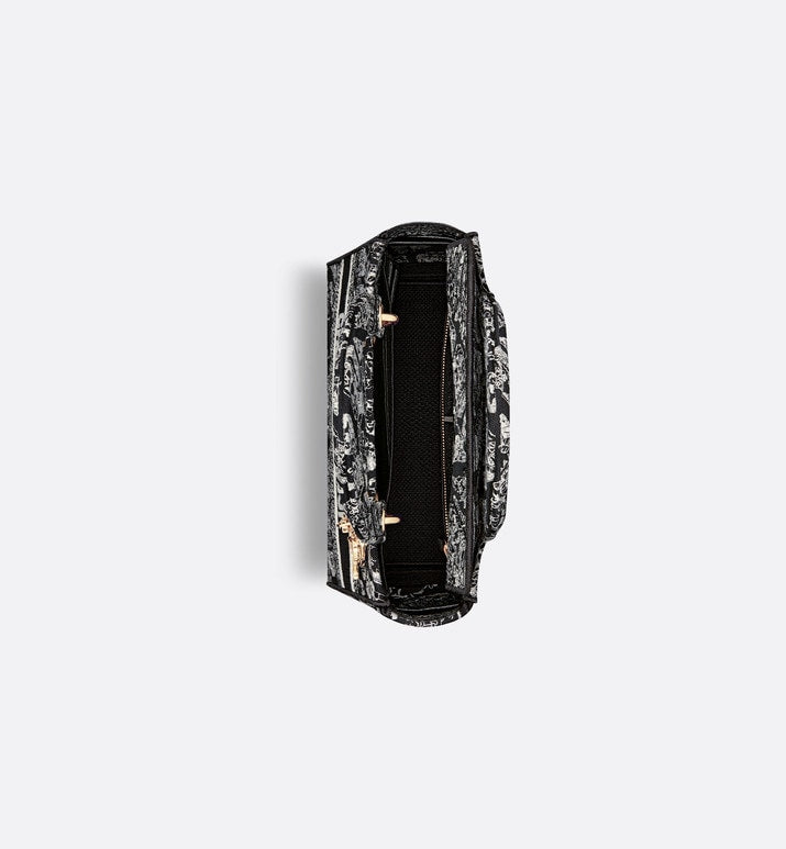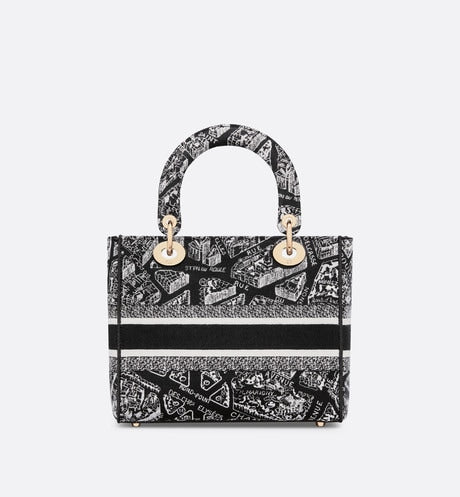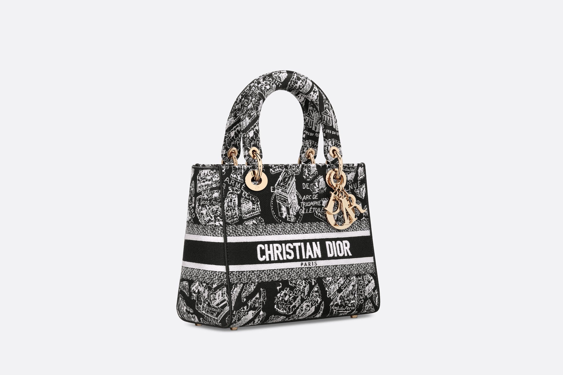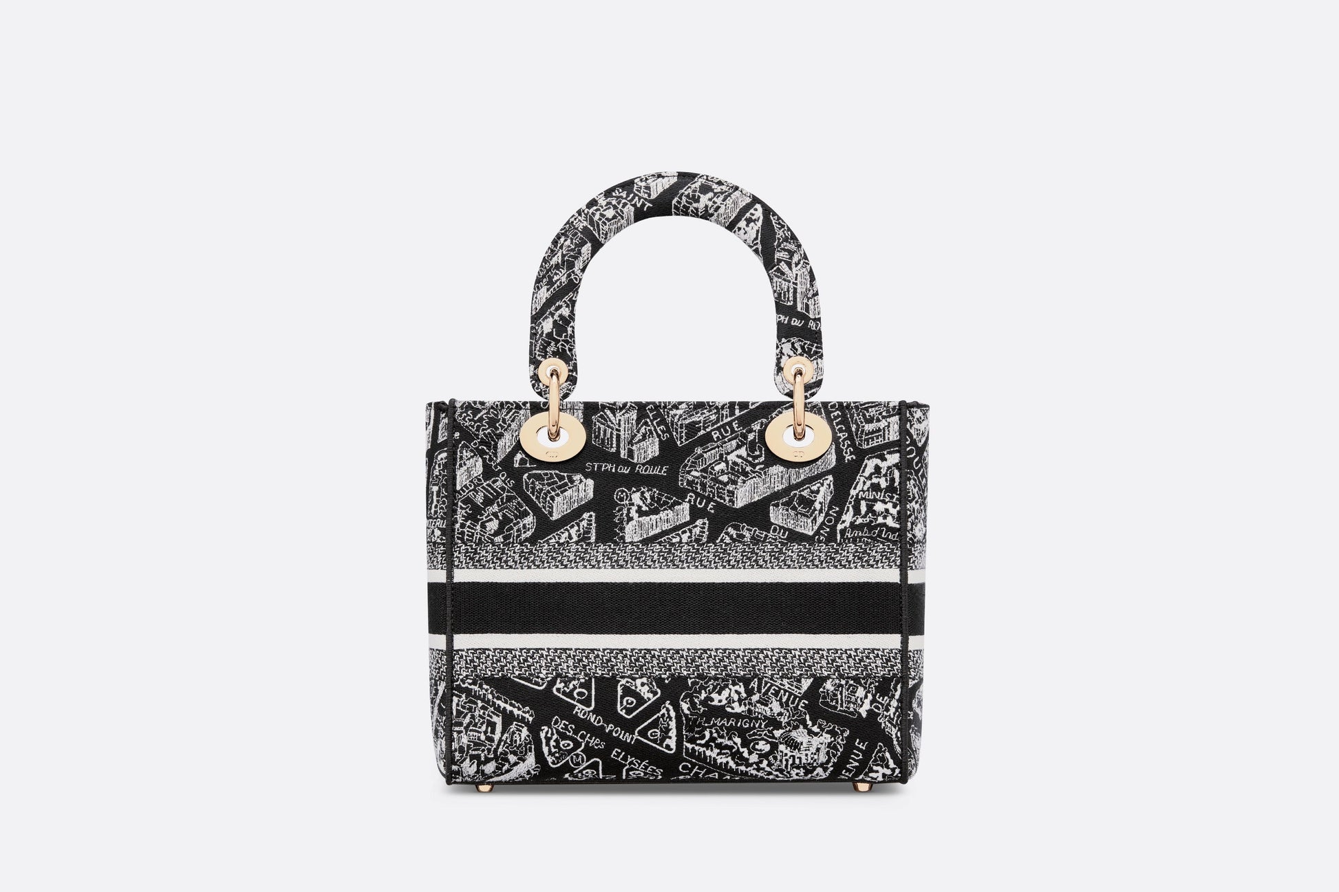 Medium Lady D-Lite Bag • Black and White Plan de Paris Embroidery