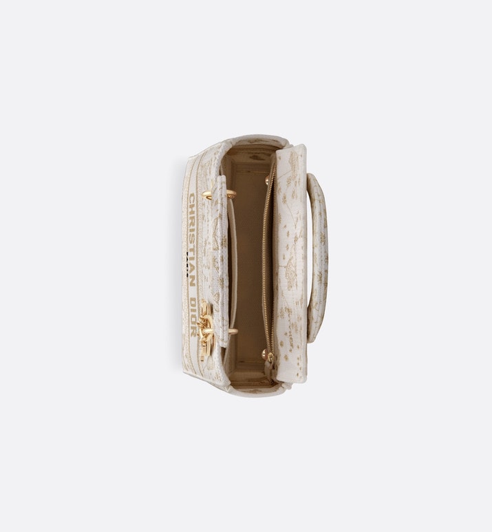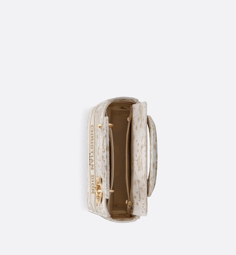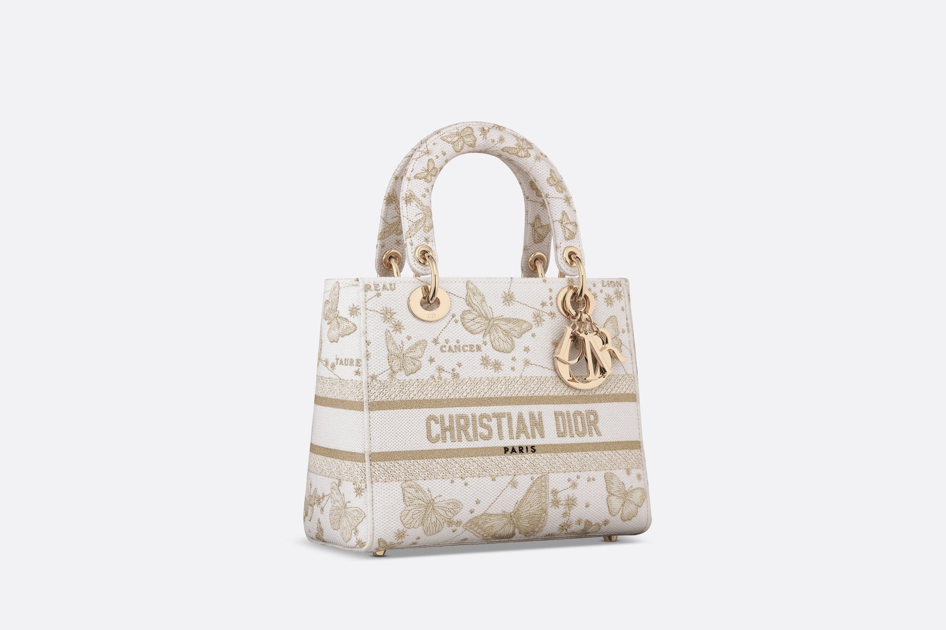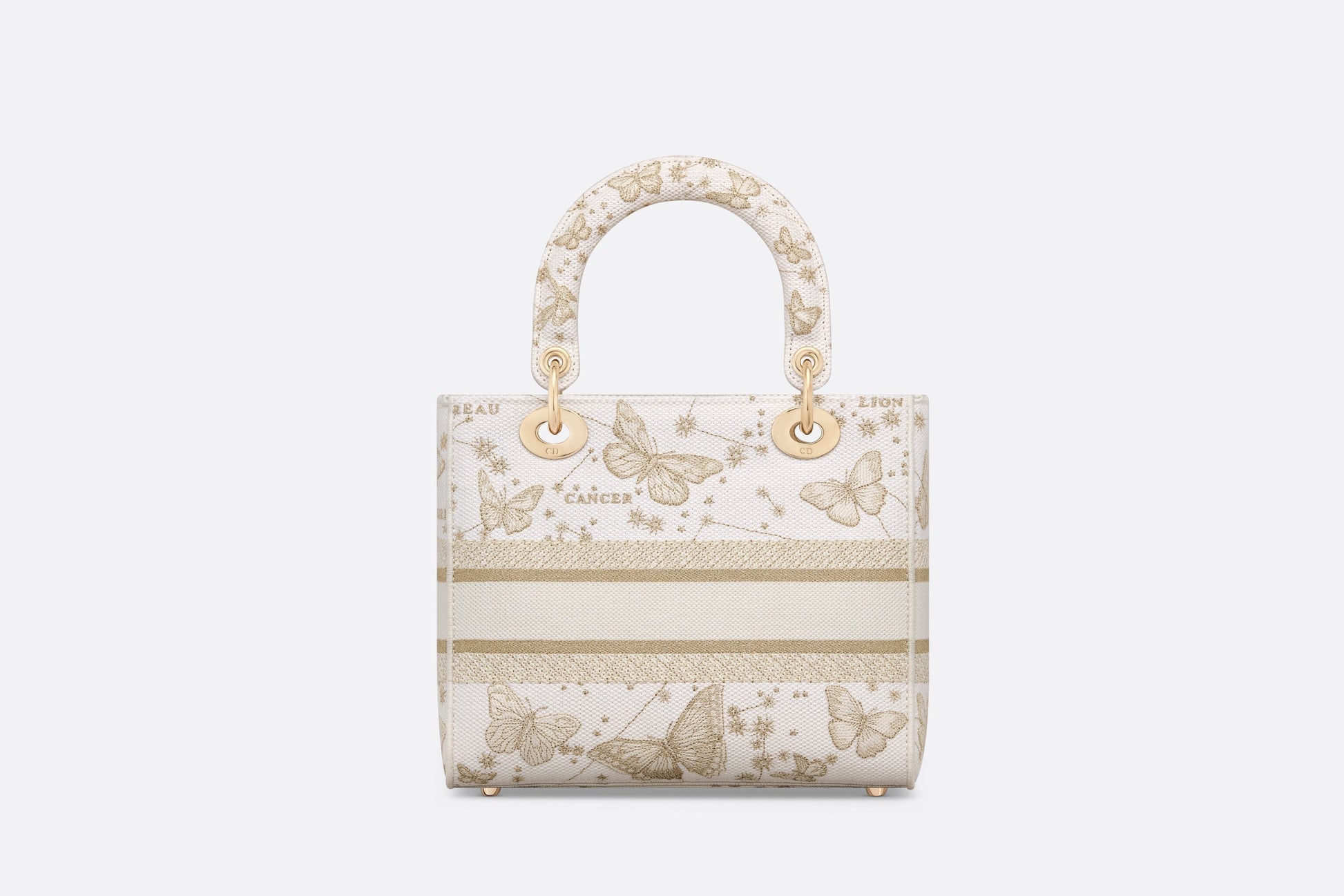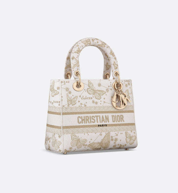 Medium Lady D-Lite Bag • Gold-Tone and White Butterfly Zodiac Embroidery