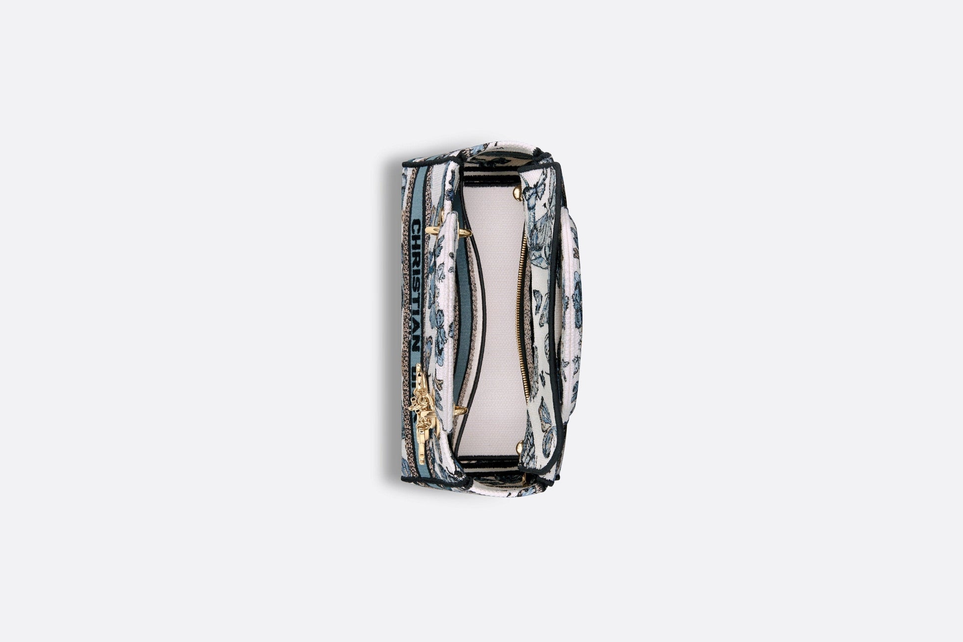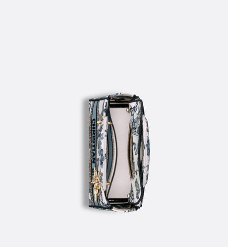 Medium Lady D-Lite Bag • White and Pastel Midnight Blue Toile de Jouy Mexico Embroidery