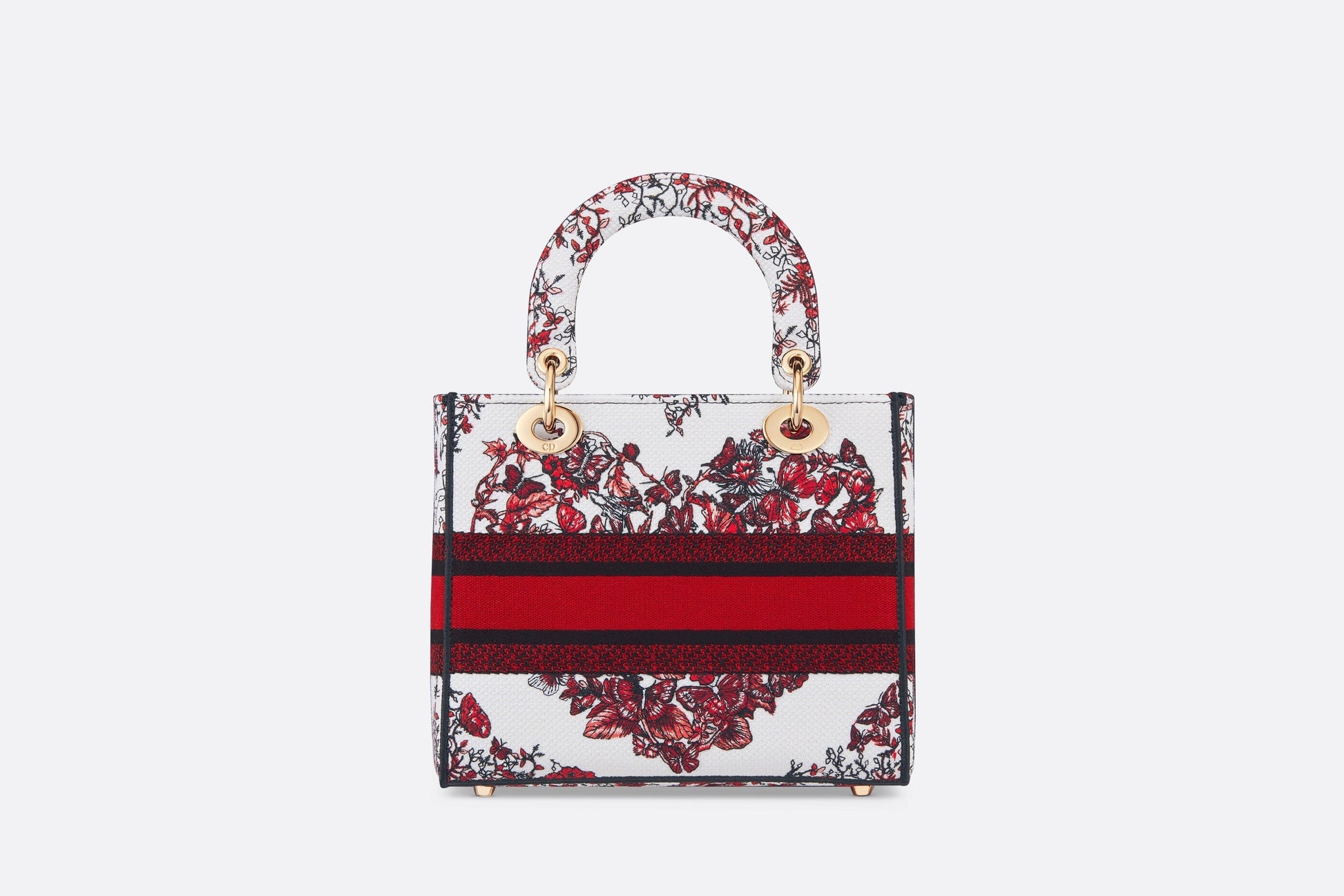 Medium Lady D-Lite Bag • White and Red Le Cœur des Papillons Embroidery
