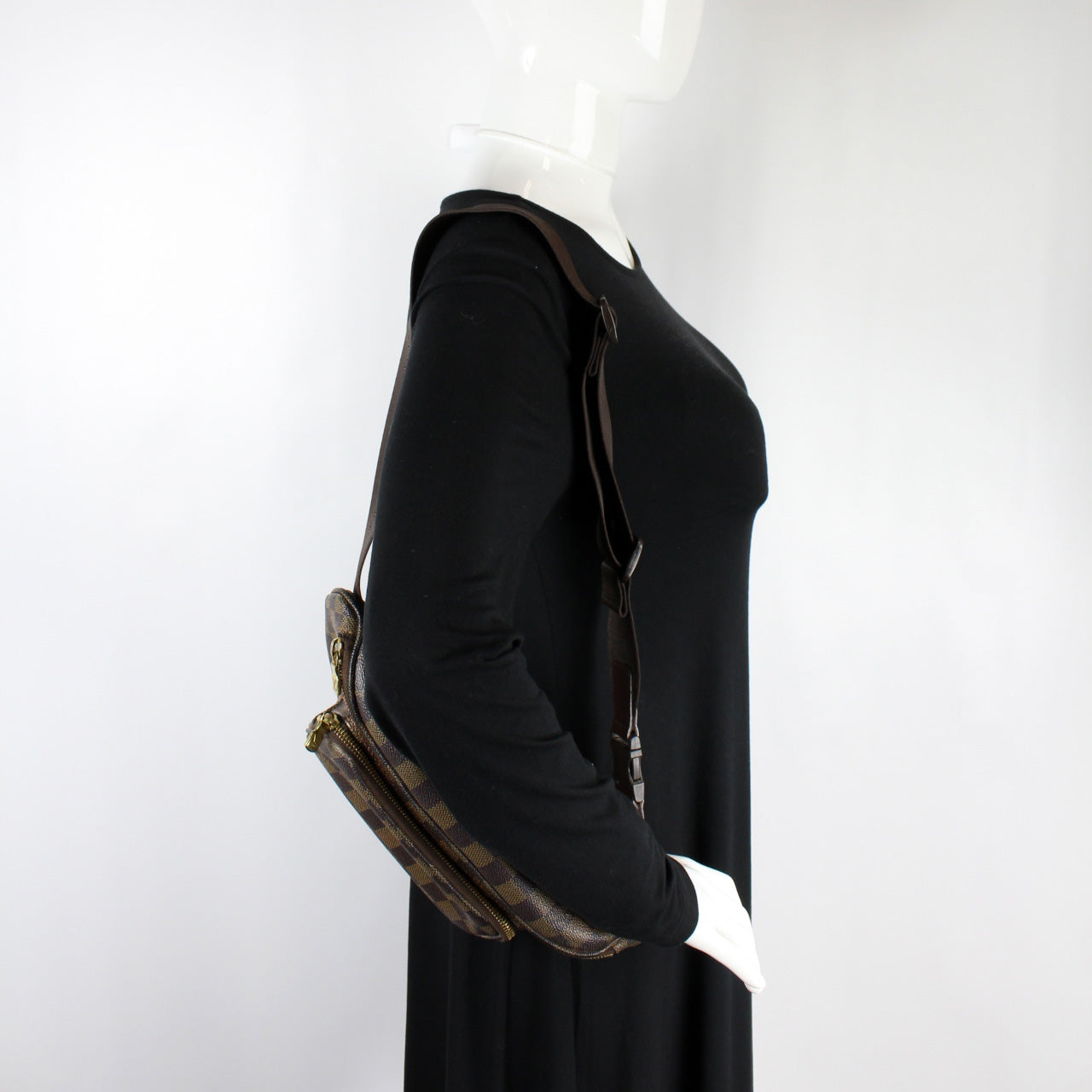 This Louis Vuitton Melville Bum Bag is guaranteed 100% . The exterior is in the classic Louis Vuitton Damier Ebene coated canvas.