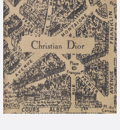 The mid-length shirt dress showcases the hallmark Plan de Paris motif, inspired by House archives and structured around Dior's historic Avenue Montaigne address. Crafted in beige and black cotton voile, it offers a flowing silhouette enhanced by a spread collar and pleated details that highlight the waist. The airy shirt dress can be paired with other Plan de Paris creations to complete the look.