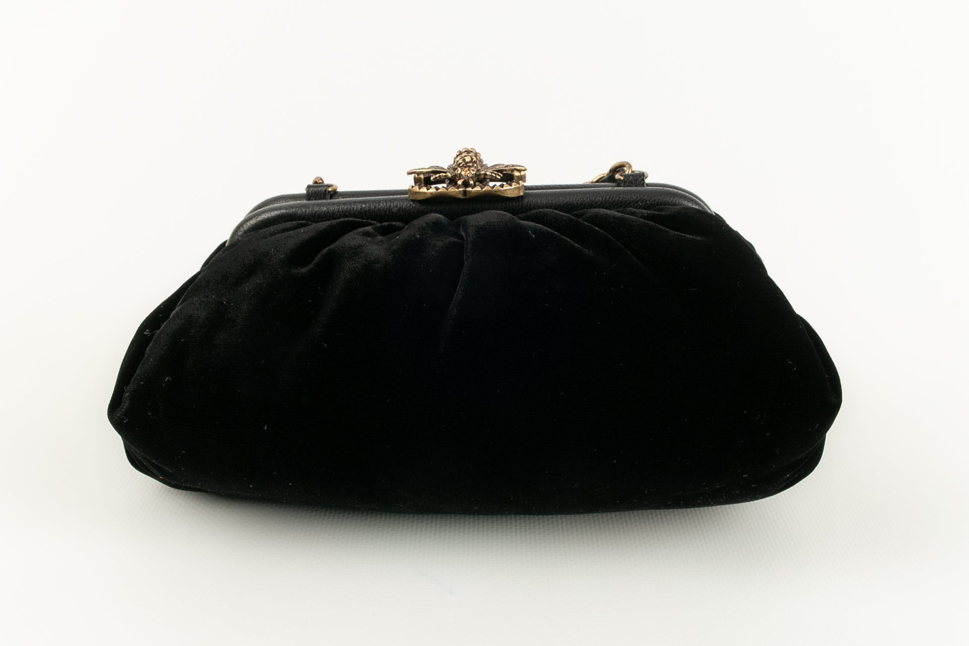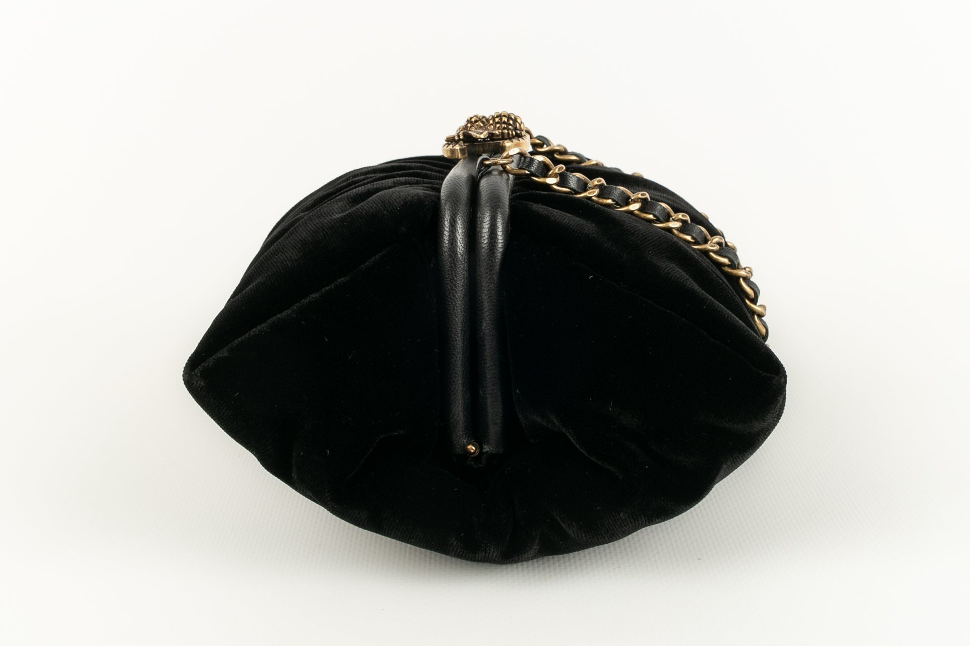 CHANEL -(Made in Italy) Minaudière en velours et cuir noir, attributs en métal doré foncé. Sac issu de ventes privées.