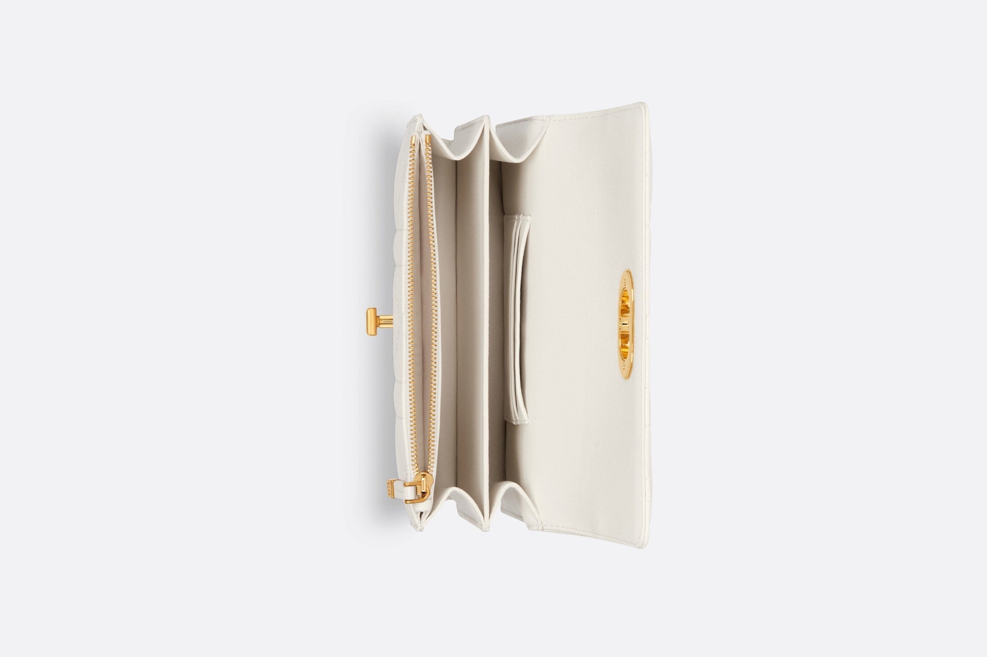 The new Fall 2023 Miss Caro bag enhances the Dior Caro line with modern and timeless elegance. Crafted in latte lambskin, it stands out with the unique quilted effect of Macrocannage stitching, as well as a flap accented by a gold-finish metal CD twist clasp inspired by the seal of a Christian Dior perfume bottle. Alternating between gold-finish metal links and tonal enamel links that match the leather, the removable chain shoulder strap has a leather insert for added comfort when carrying the miniature bag by hand or wearing it crossbody.