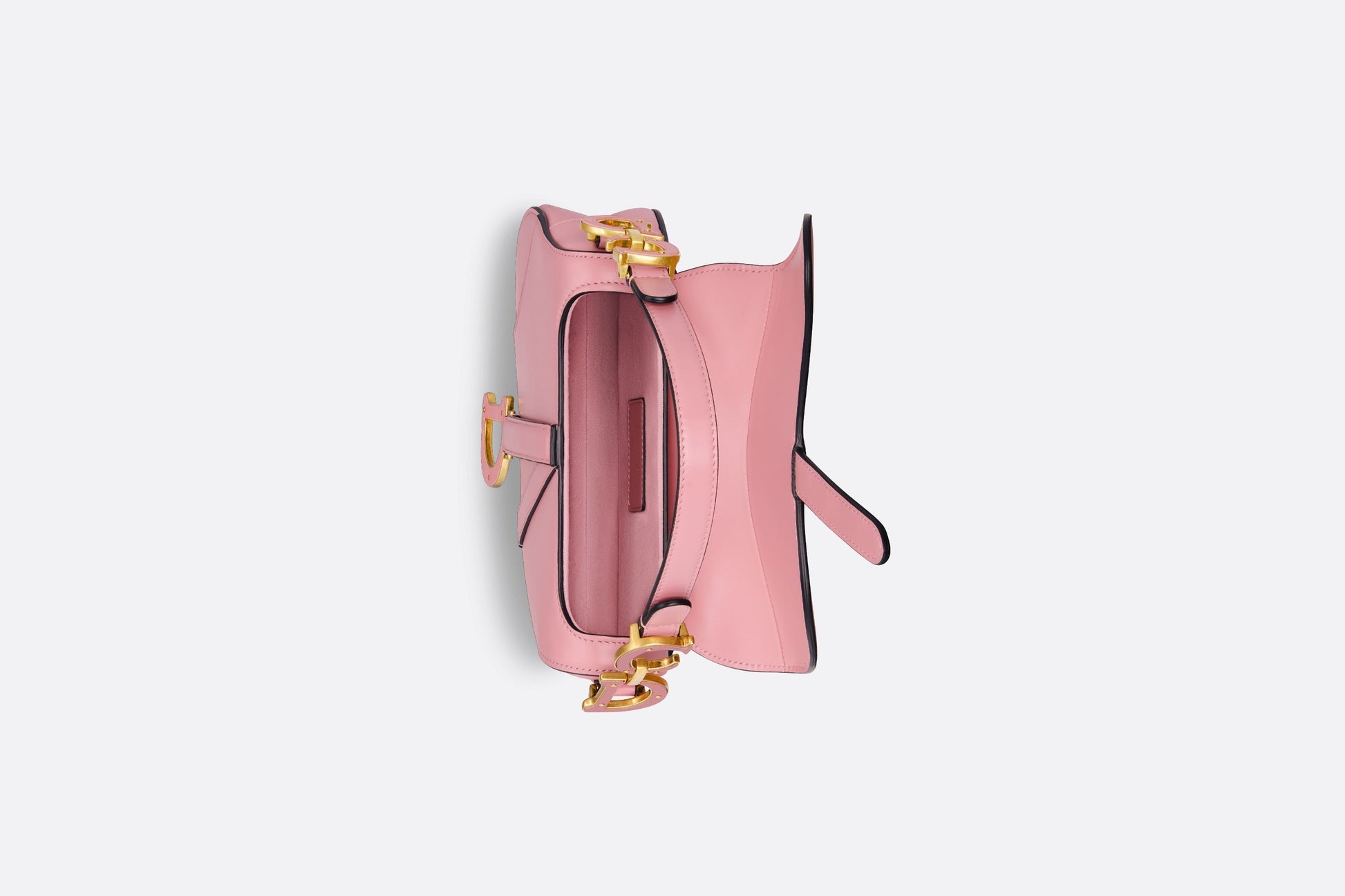 Maria Grazia Chiuri brings a fresh update to the iconic Saddle bag. Crafted in melocoton pink deerskin with a subtle pearlescent effect, the legendary design features a Saddle flap with a D stirrup clasp on a magnetic strap with pulls, as well as an antique gold-finish metal CD signature on either side of the shoulder strap. Equipped with a thin, adjustable and removable shoulder strap, the miniature Saddle bag may be carried by hand, worn over the shoulder or crossbody.