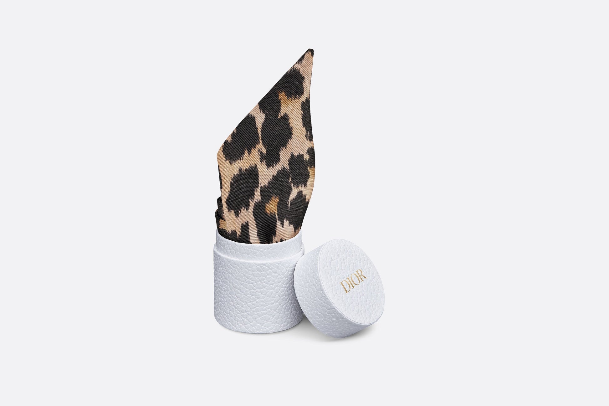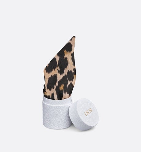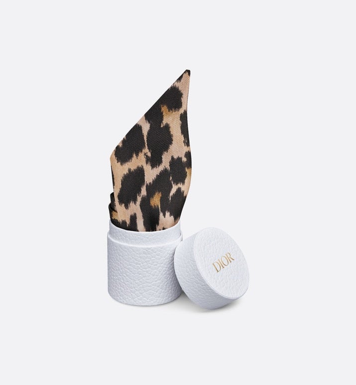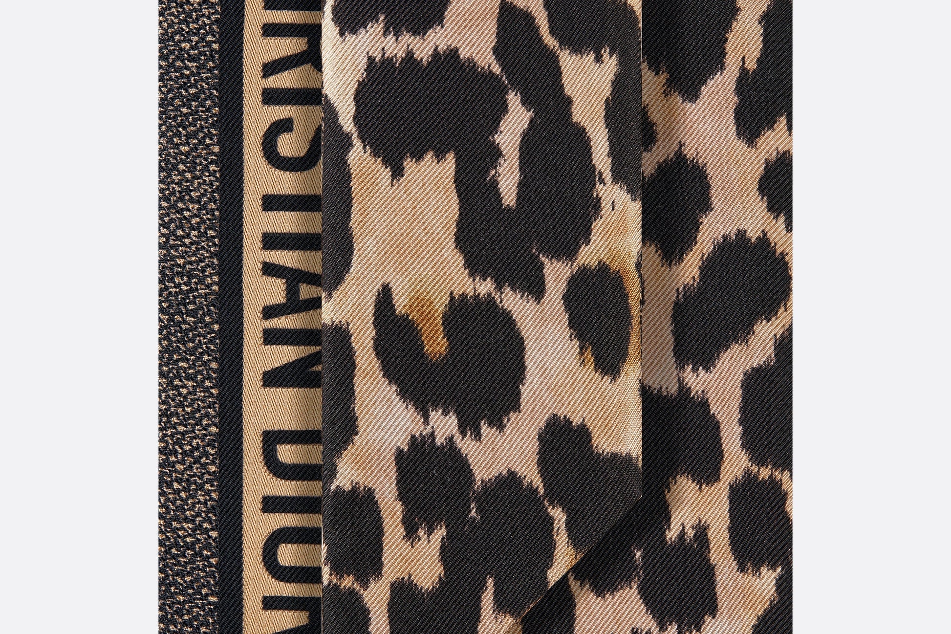 The Mizza Mitzah scarf is crafted in a beige multicolor leopard-print silk twill, inspired by the House archives. A timeless style, its elongated shape and pointed ends are embellished with a 'CHRISTIAN DIOR' signature jacquard band at the back. The scarf will lend the finishing touch to any modern look and may be tied around the neck, at the wrist or on a bag.
