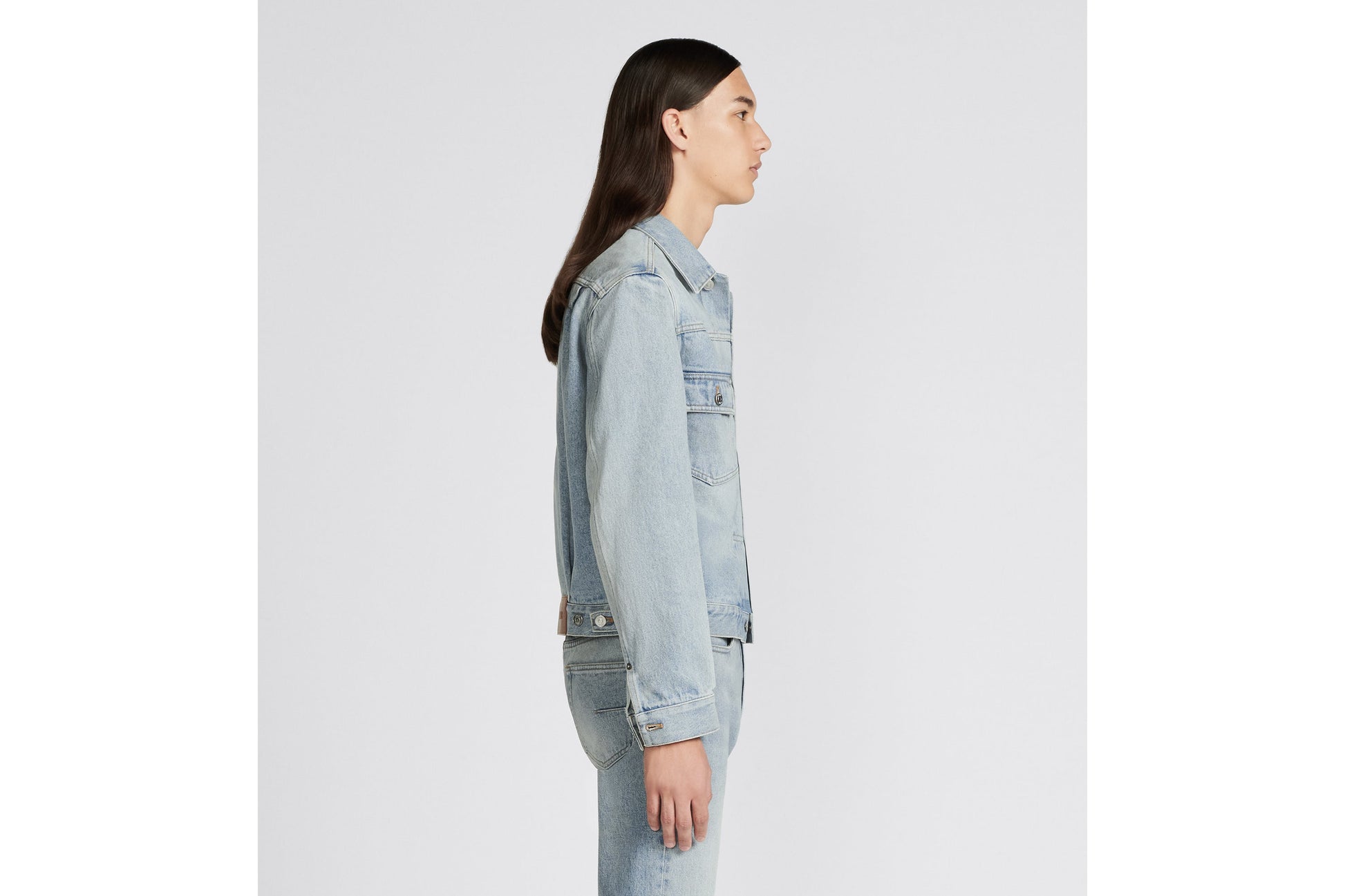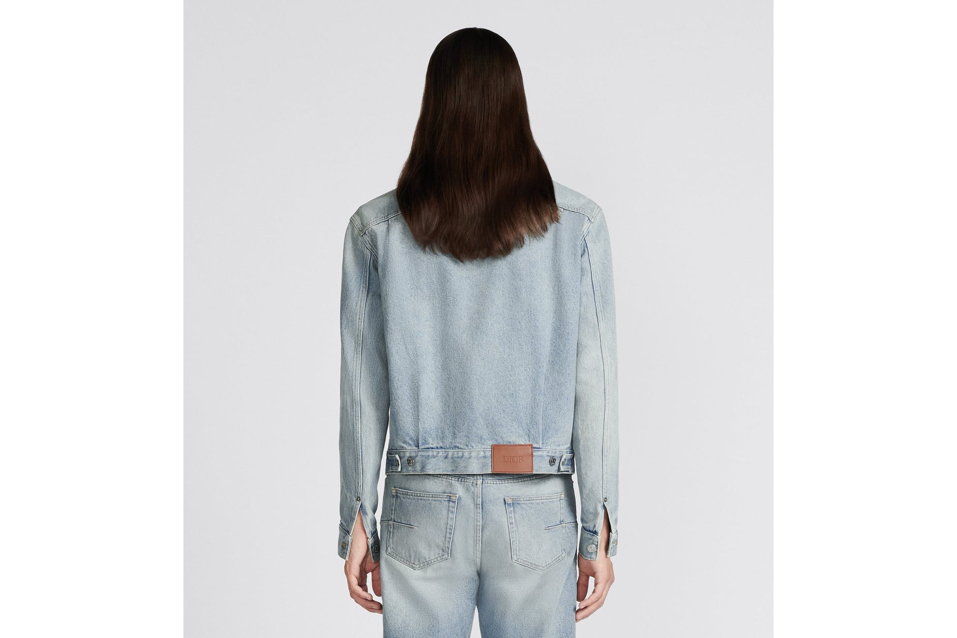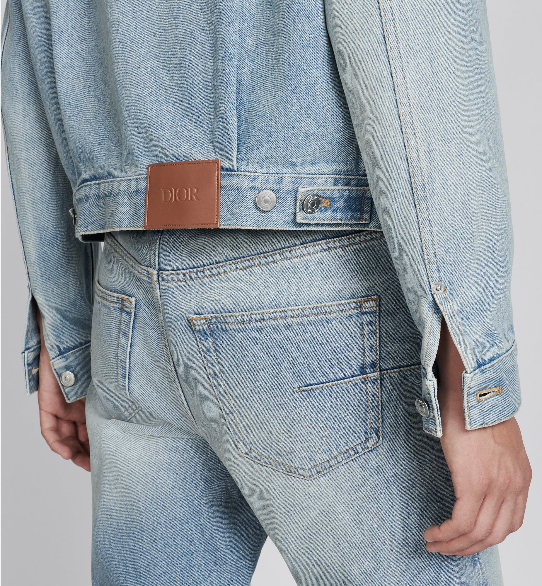 The jacket showcases an environmentally innovative denim fabric made from regenerative agriculture. Crafted in light blue cotton twill, it is laser-faded with an eco-responsible approach that reduces the use of water during production. Displaying a vintage effect, the style is enhanced by a Dior-embossed leather tag on the back. The jacket can be worn with the matching jeans to complete a modern look. For lasting care, follow the care instructions on the garment’s tag. So as to preserve its quality, wash the jacket inside out, as little as possible and dry flat in open air. Your denim will lighten over time and become a unique piece. Care: Do not wash the garment above 30 °C (86 °F), bleach it, iron it above 100 °C (212 °F) or tumble dry. Dry clean normally.