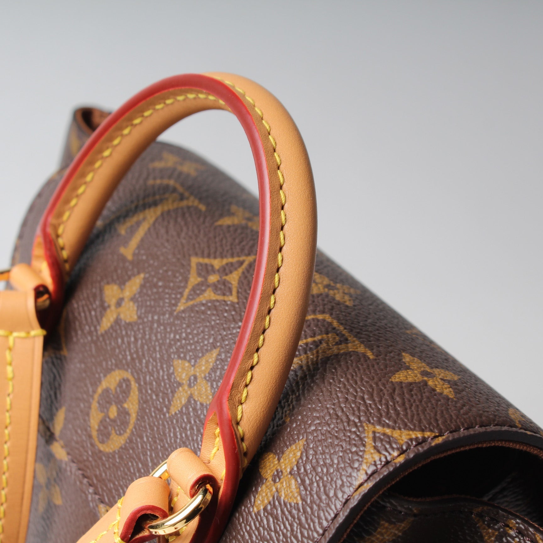 This Louis Vuitton Montsouris NM PM is guaranteed 100% . The exterior is in the classic Louis Vuitton Monogram coated canvas.