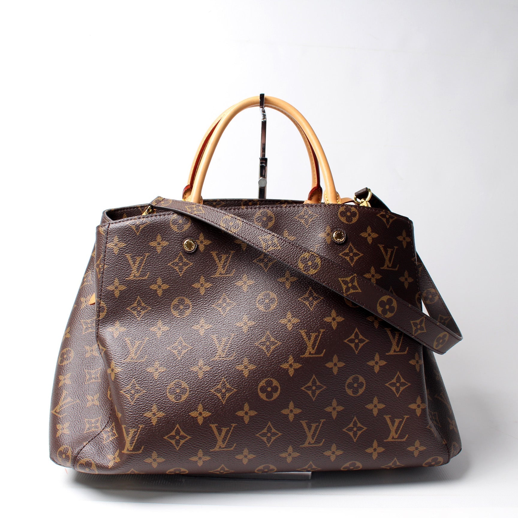 This Louis Vuitton Montaigne GM is guaranteed 100% . The exterior is in the classic Louis Vuitton Monogram coated canvas.