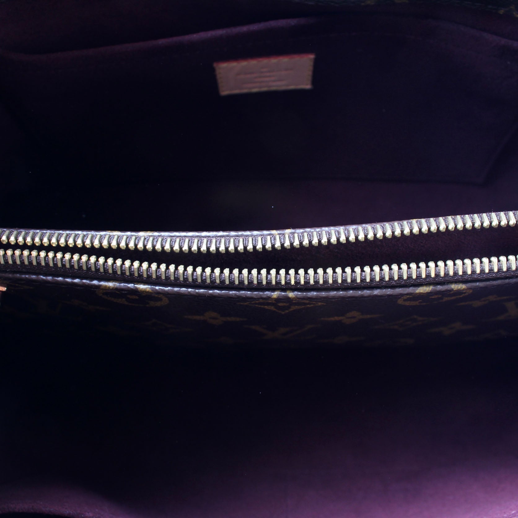 Interior: The interior is clean and free of rips or tears. The interior features one zip closure pocket, and three open pockets.