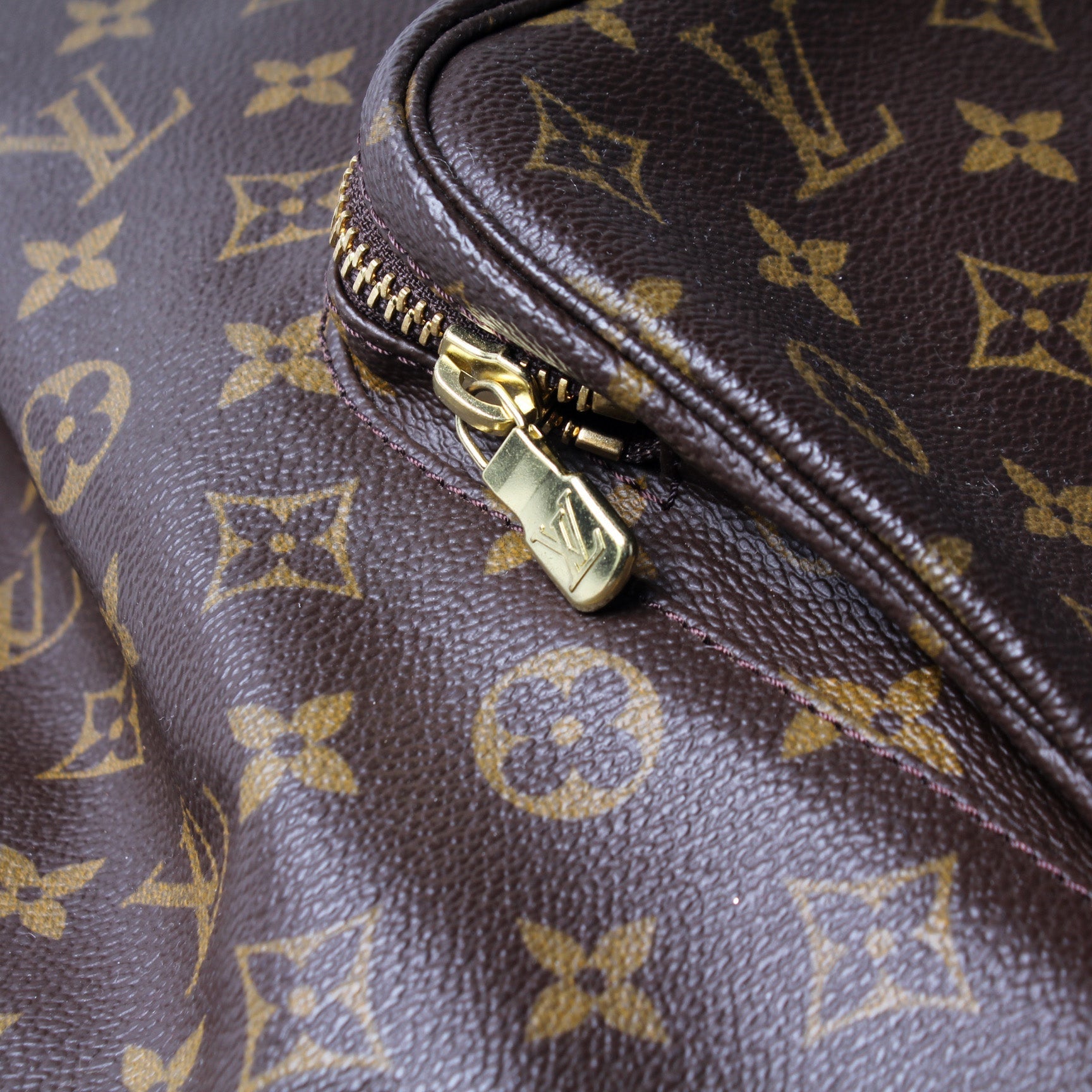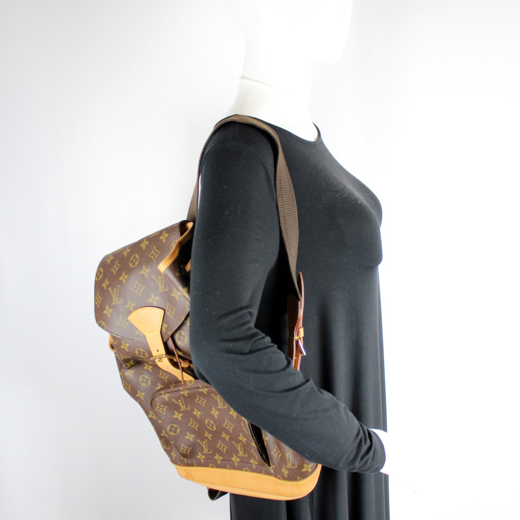 This Louis Vuitton Montsouris GM is guaranteed 100% . The exterior is in the classic Louis Vuitton Monogram coated canvas.