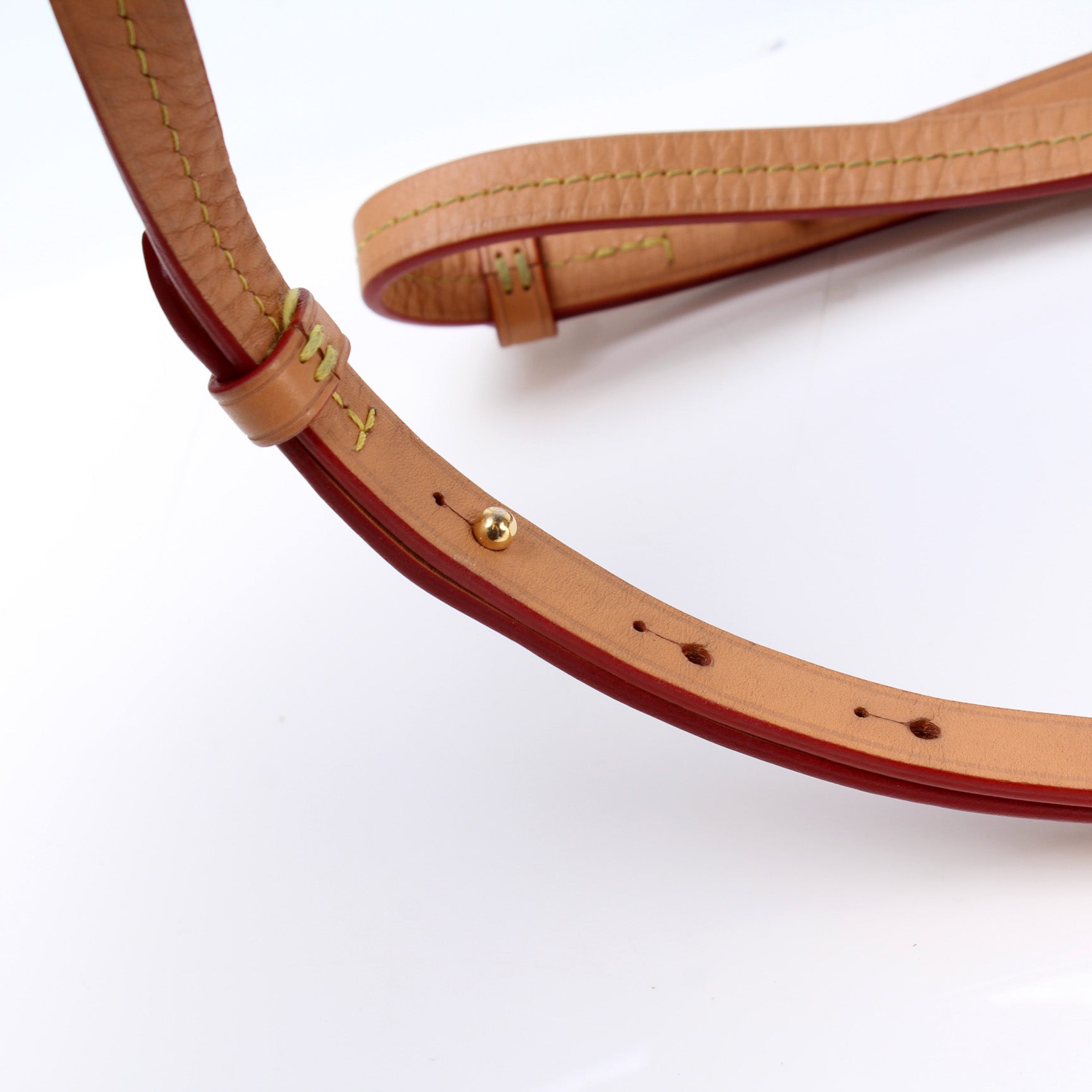Strap: The leather on the shoulder straps shows minor signs of wear.