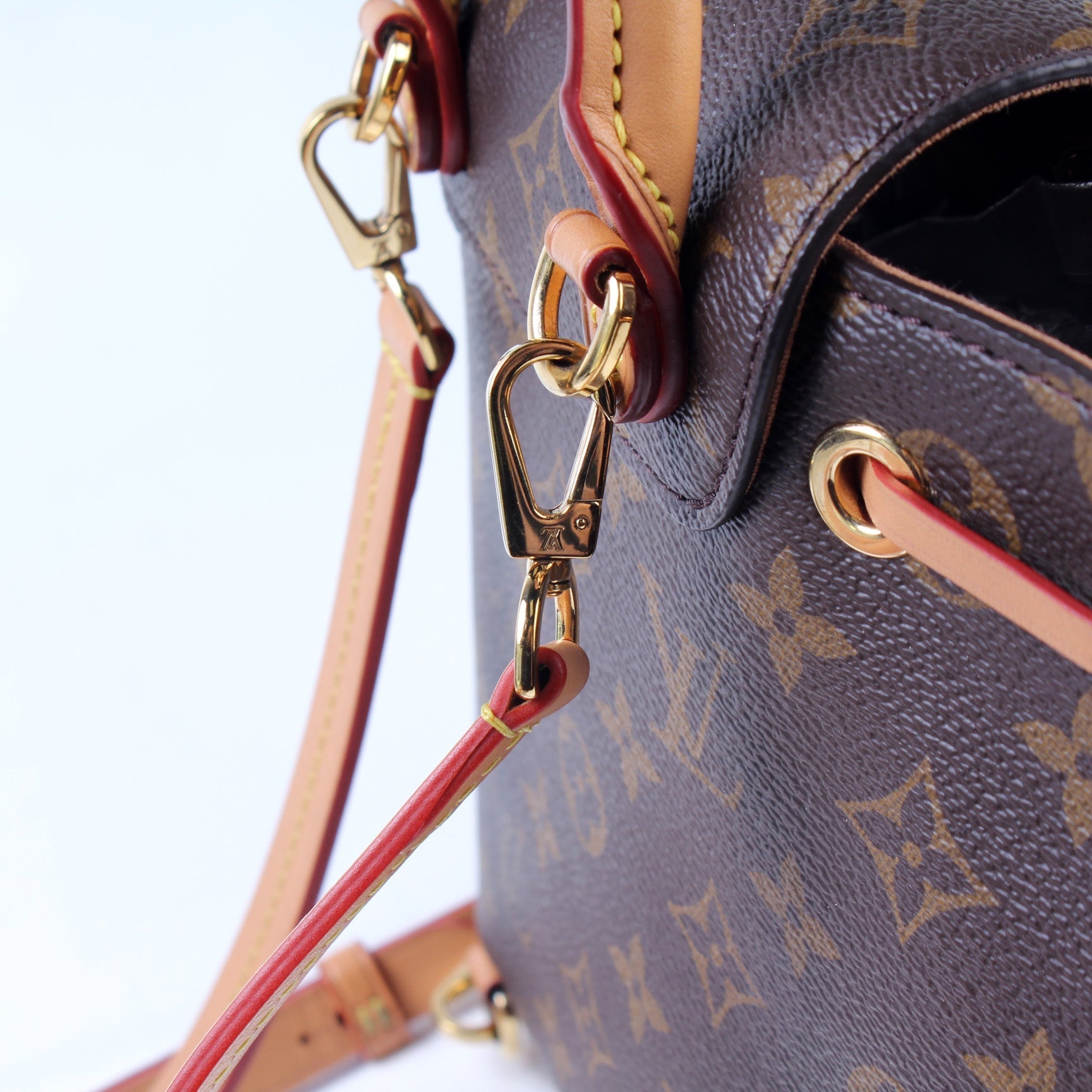 This Louis Vuitton Montsouris BB is guaranteed 100% . The exterior is in the classic Louis Vuitton Monogram coated canvas.