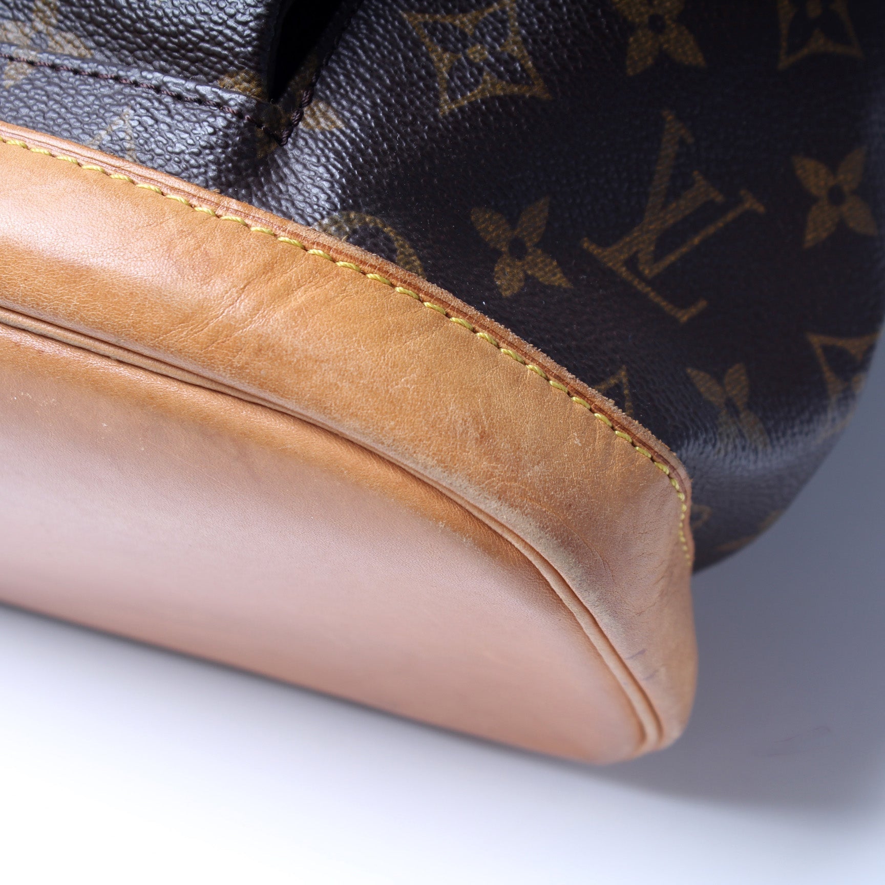 This Louis Vuitton Montsouris GM is guaranteed 100% . The exterior is in the classic Louis Vuitton Monogram coated canvas.