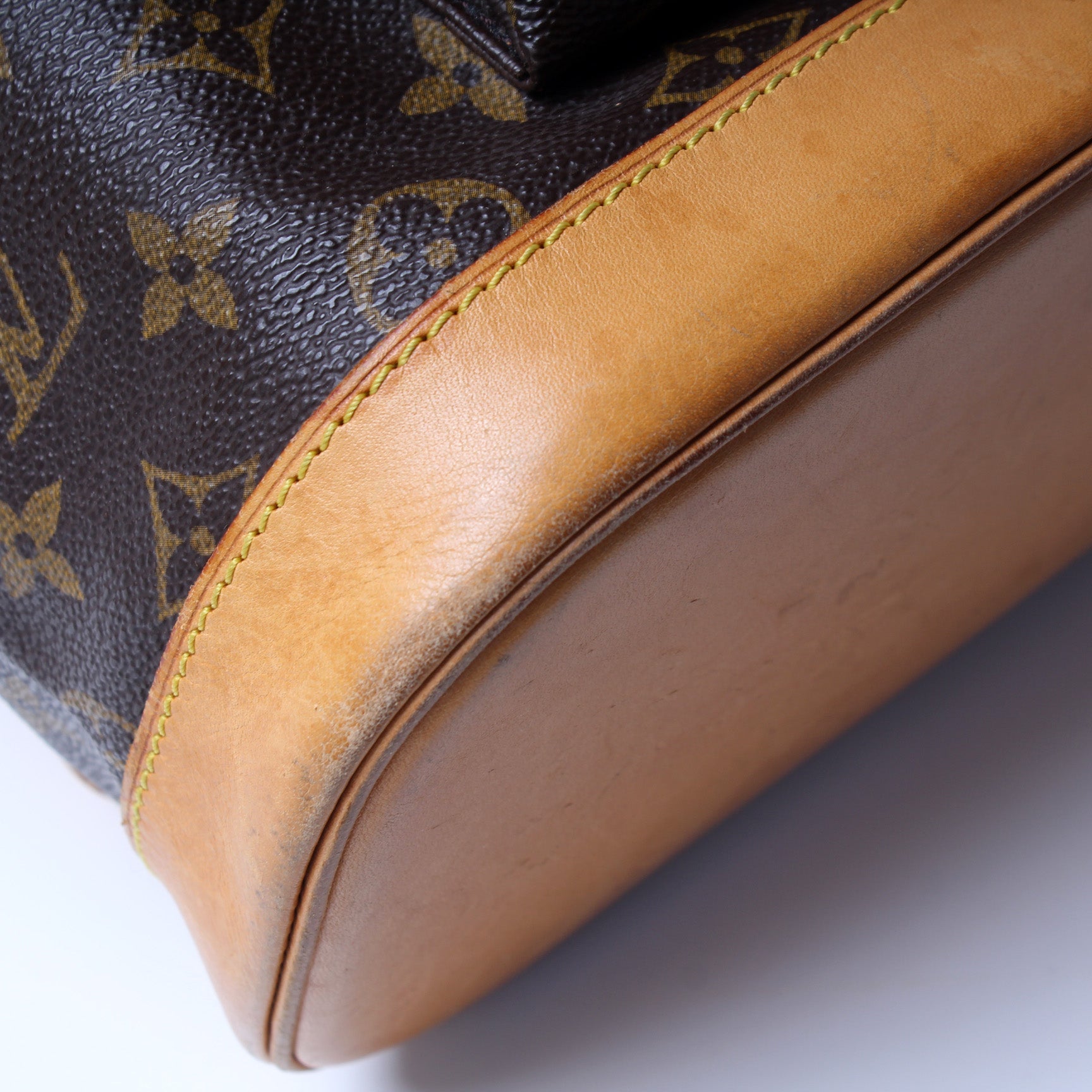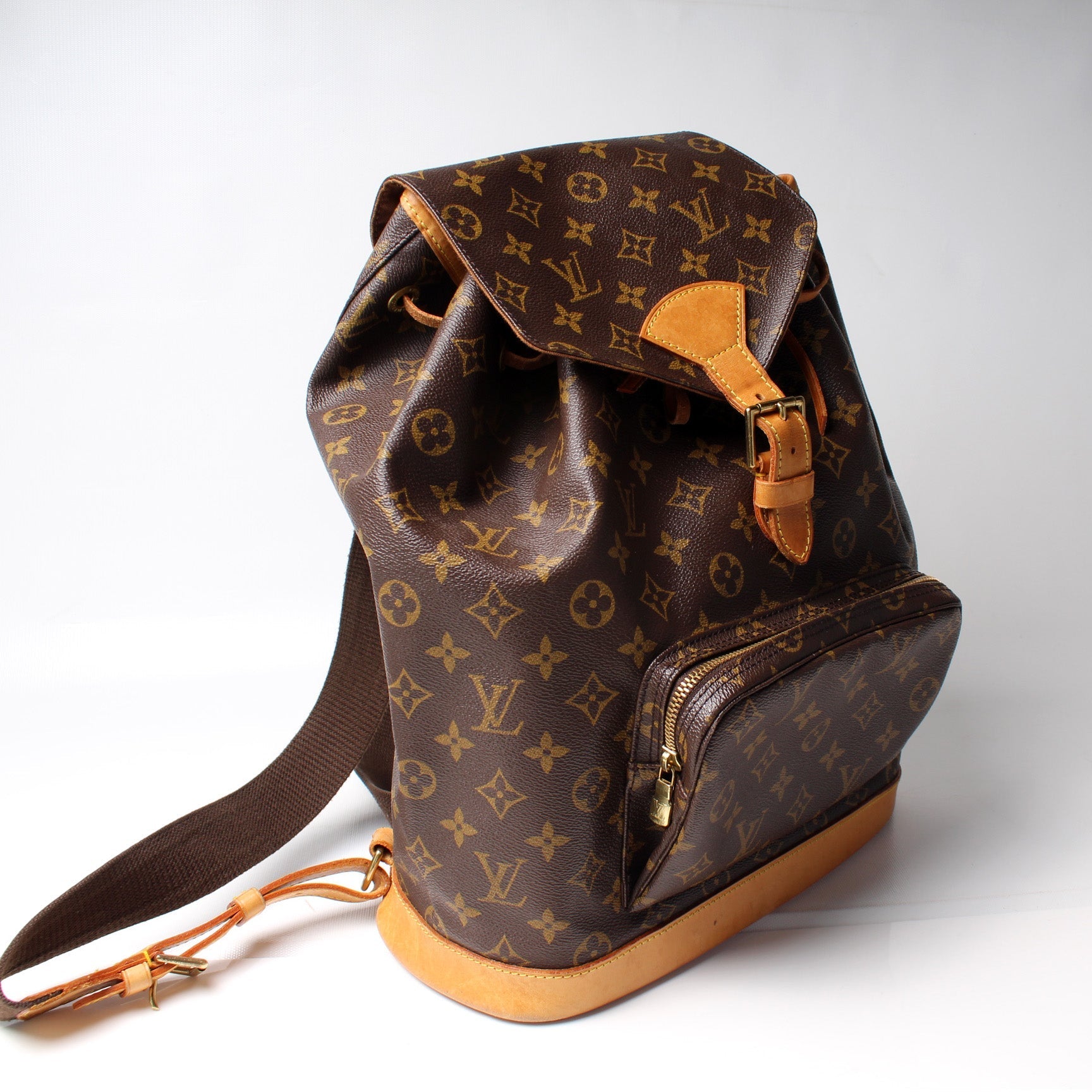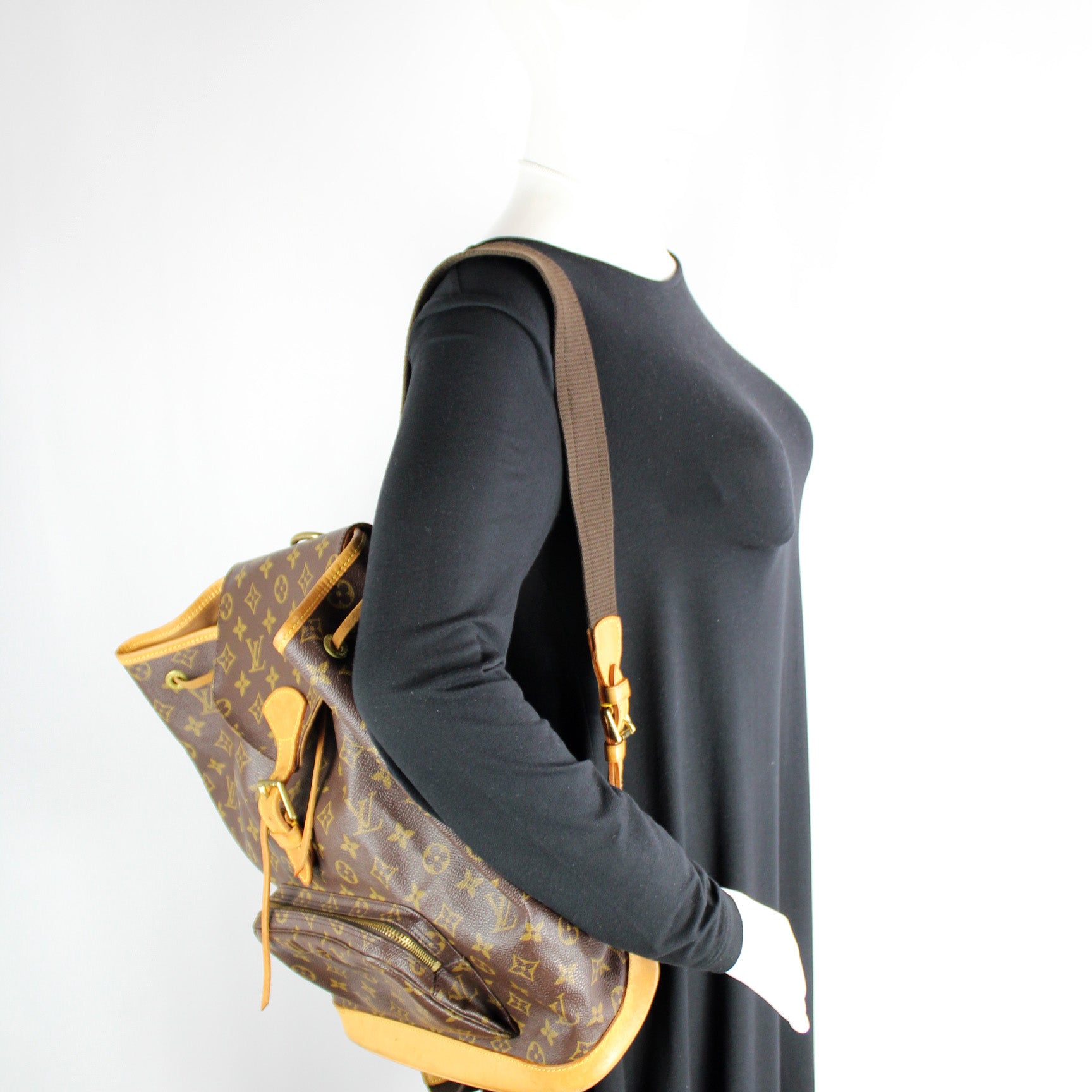 This Louis Vuitton Montsouris GM is guaranteed 100% . The exterior is in the classic Louis Vuitton Monogram coated canvas.