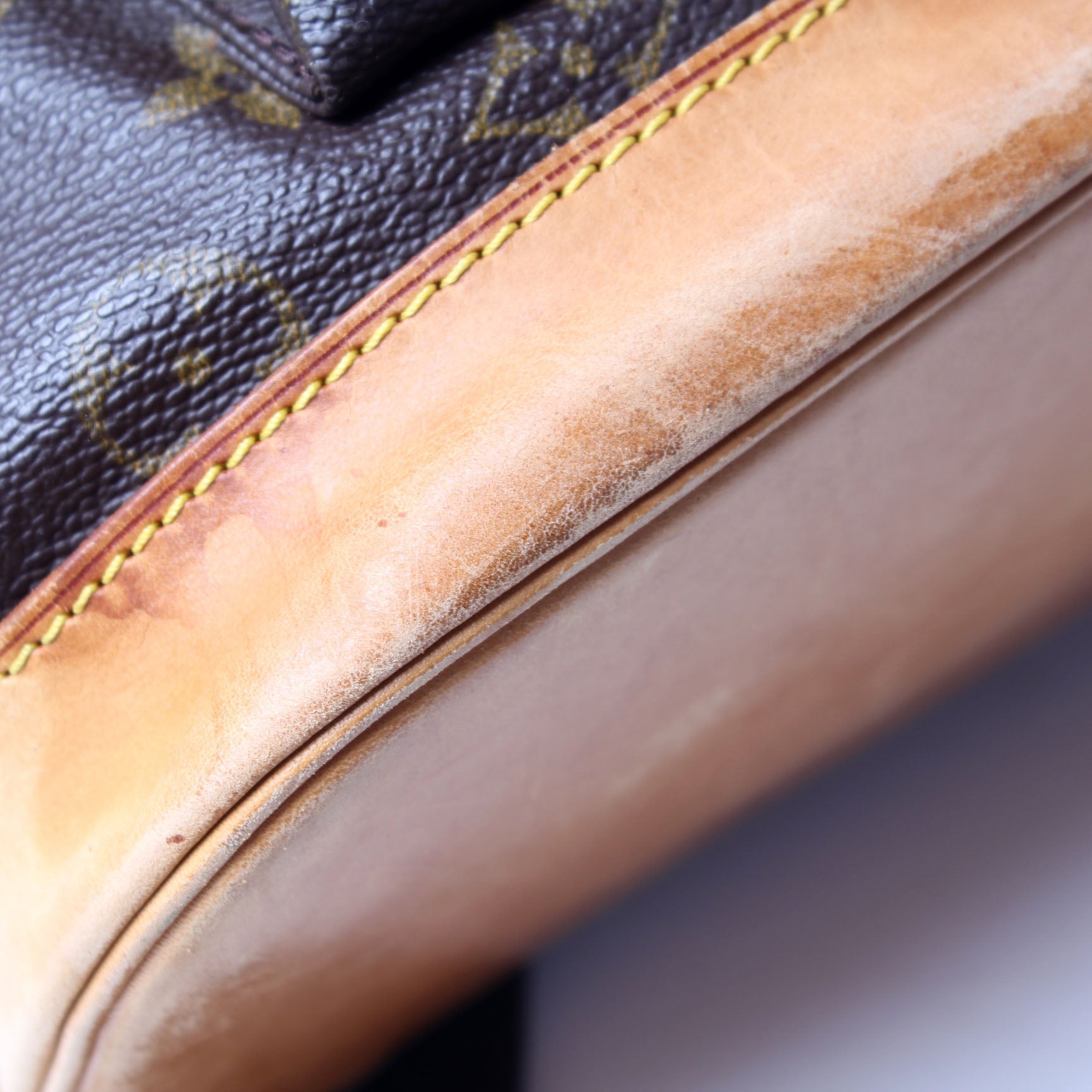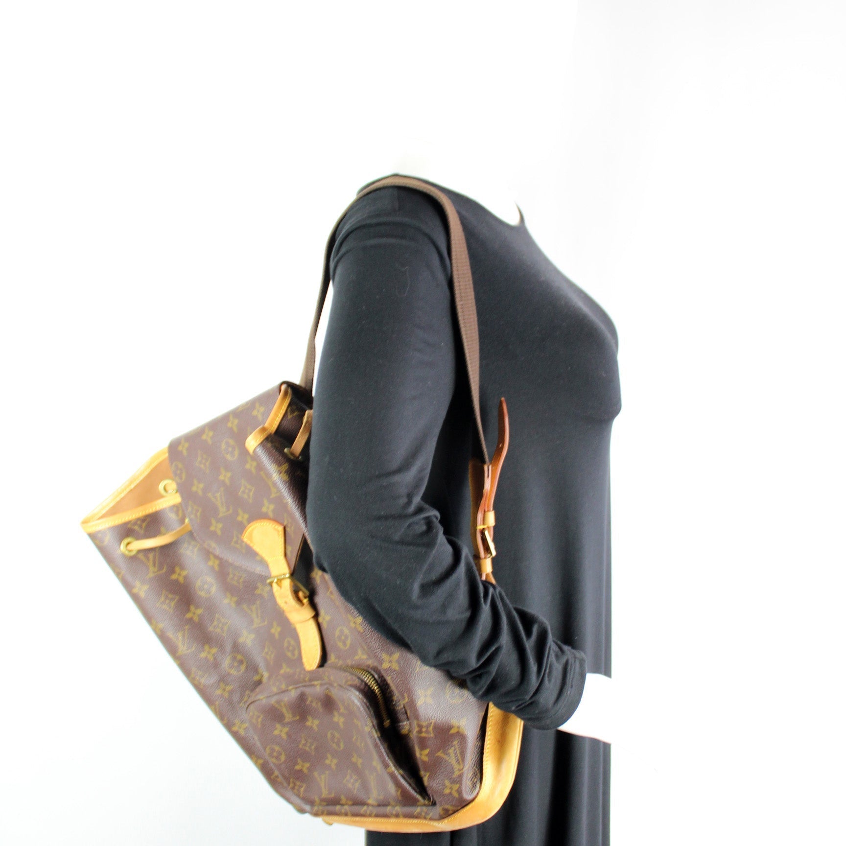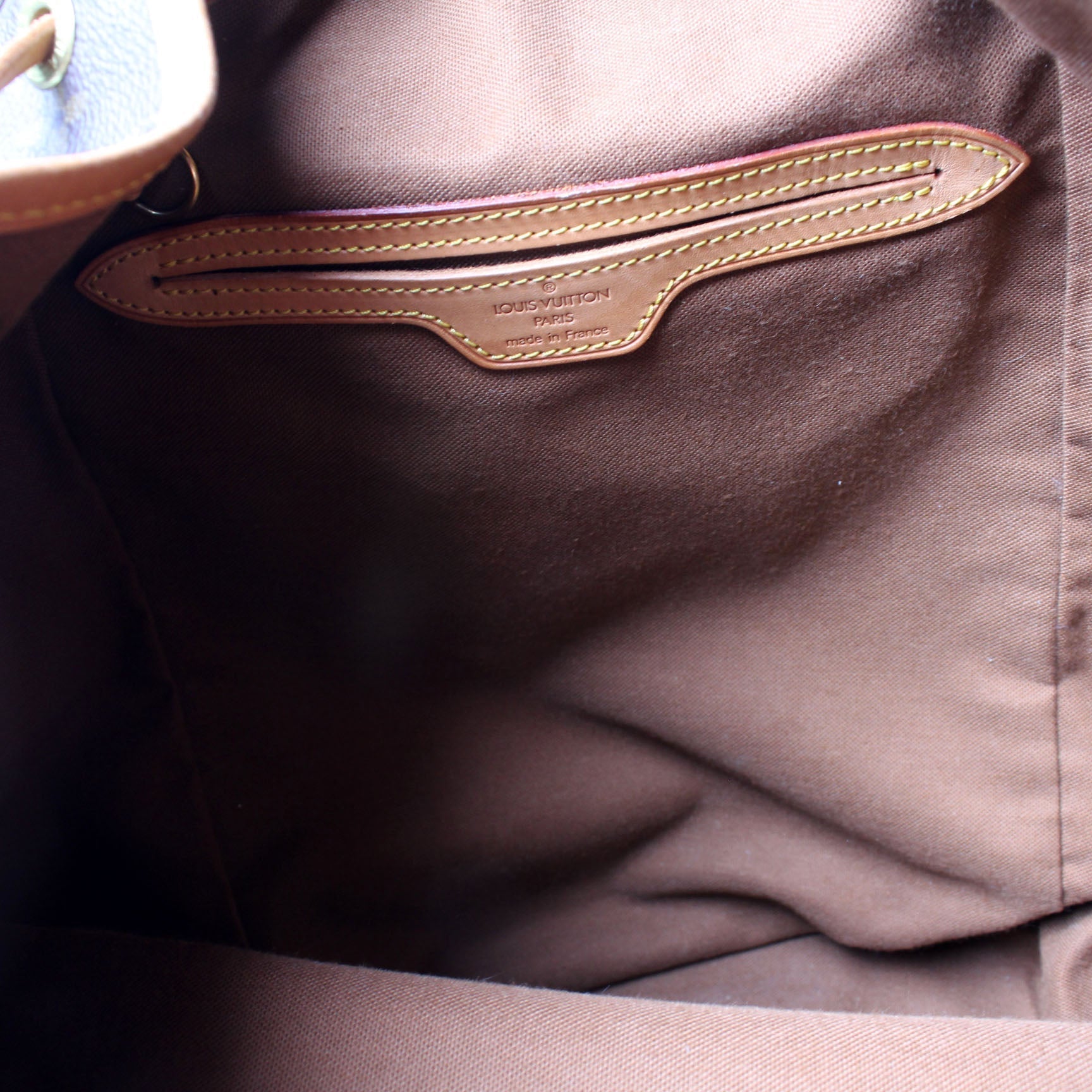 This Louis Vuitton Montsouris GM is guaranteed 100% . The exterior is in the classic Louis Vuitton Monogram coated canvas.
