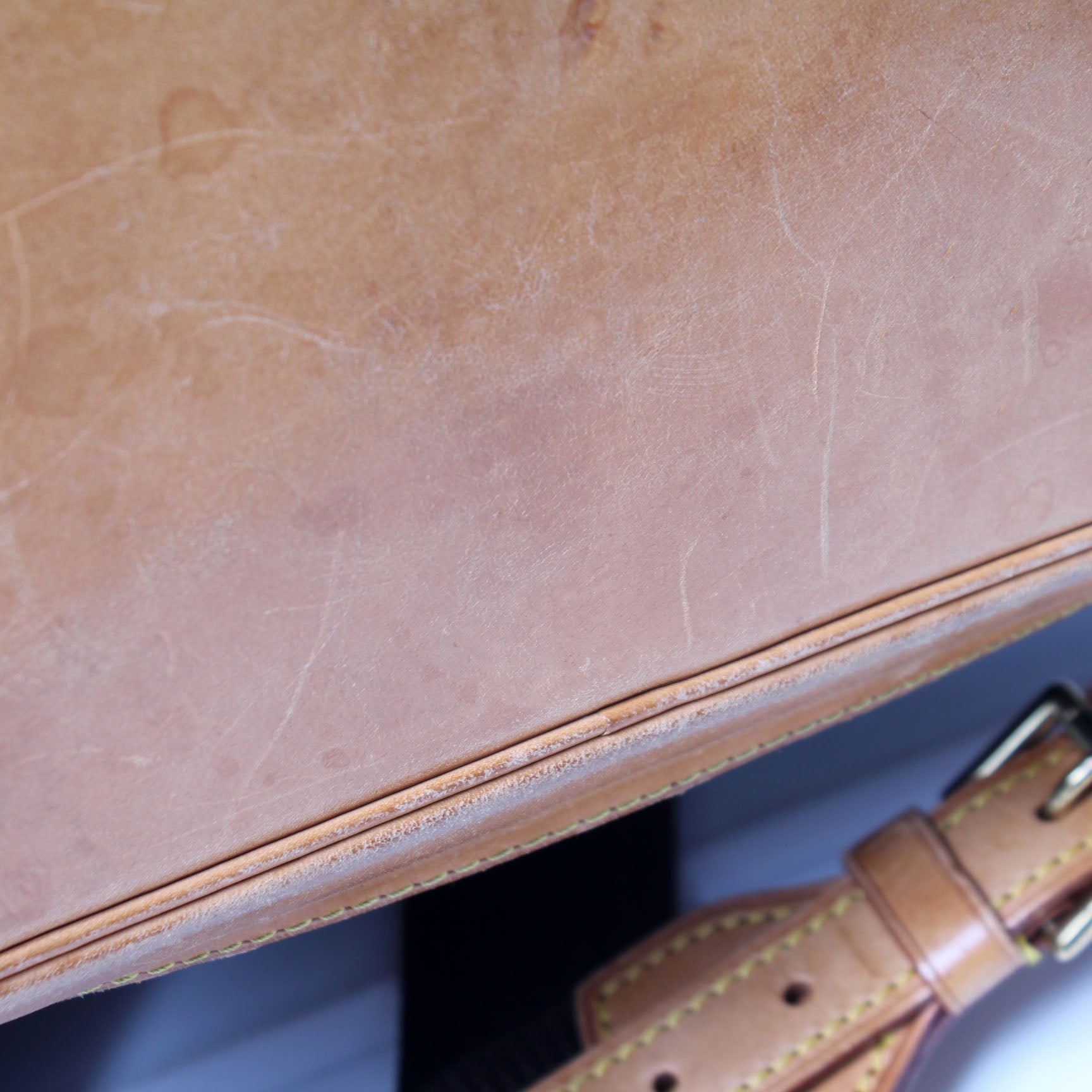 Strap: The leather on the shoulder straps shows minor signs of wear.